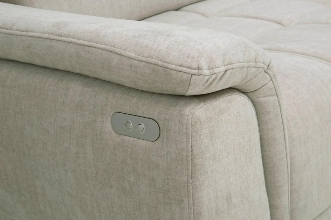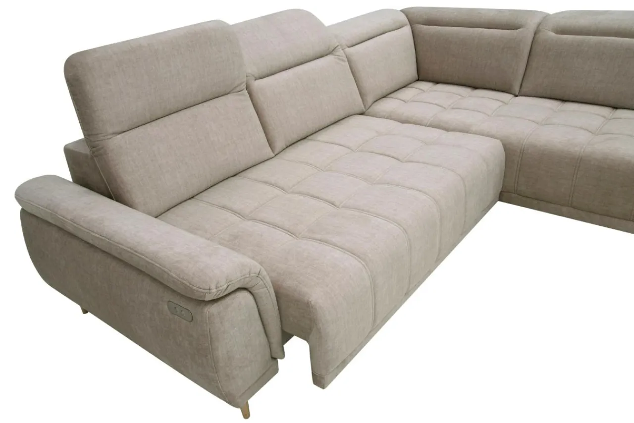 Narożnik CALVARO L ma elektrycznie regulowane siedzisko za pomocą przycisku.