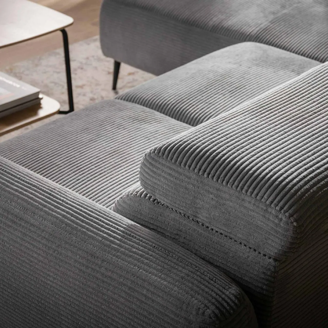 - Sztruksowa tkanina nada wnętrzu przytulnego wyrazu.