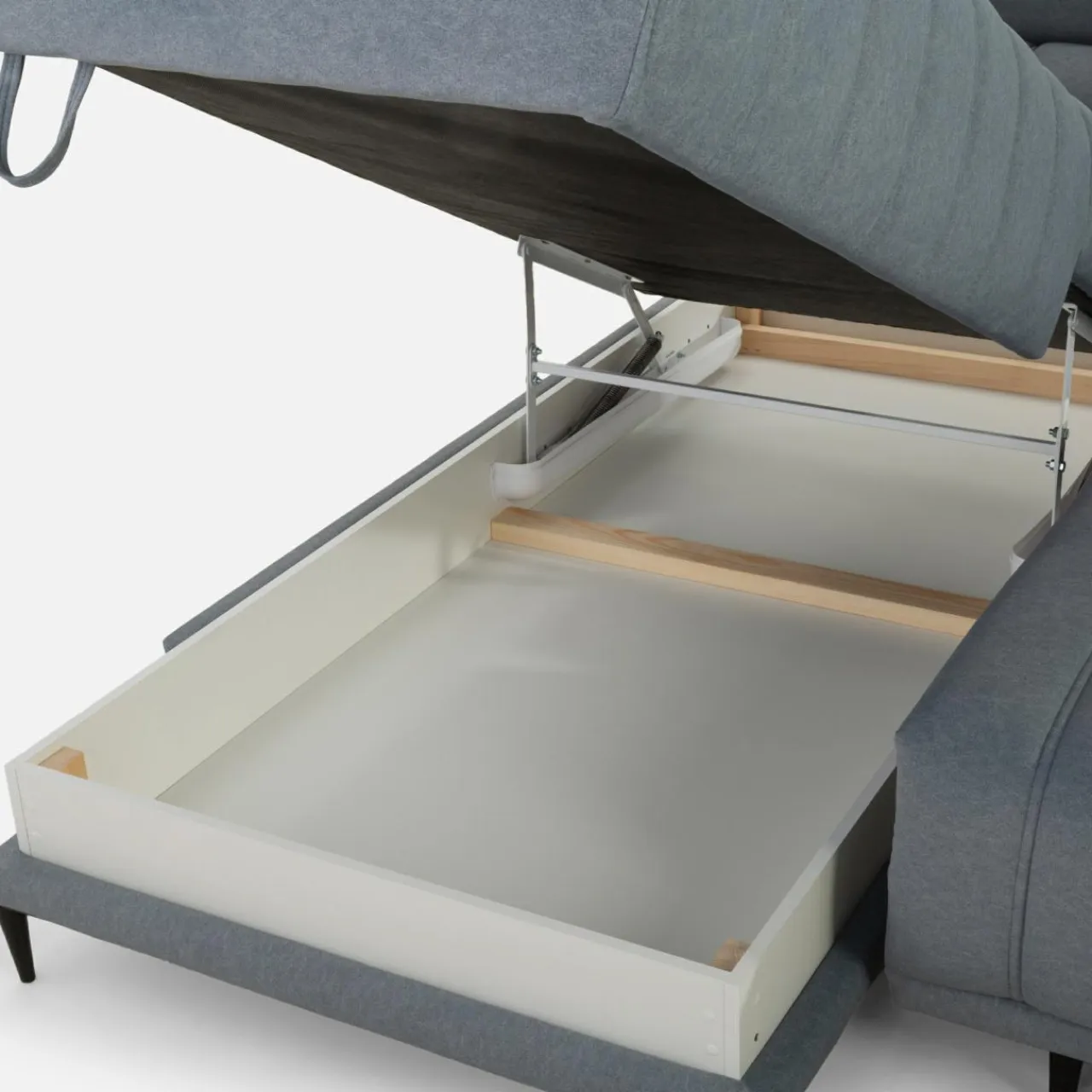 - Pojemnik znajduje się w leżance – możesz wyciągnąć z niego pościel, nawet jeśli narożnik będzie rozłożony.
