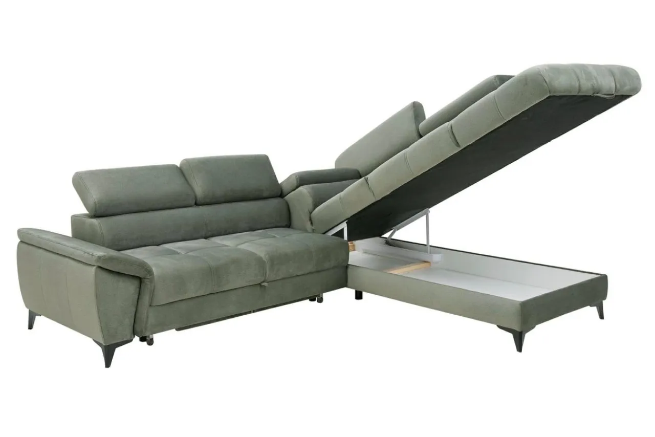 Schowek znajduje się w tzw. otomanie. Można się do niego dostać podnosząc wierzchnią część mebla. Jest pojemny i zapewnia komfortowe pakowanie pościeli.