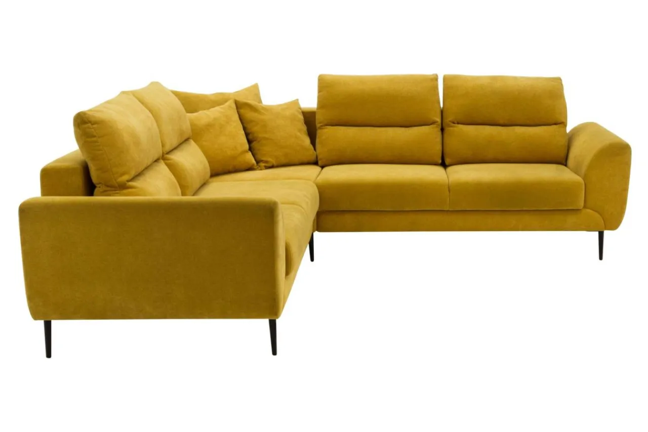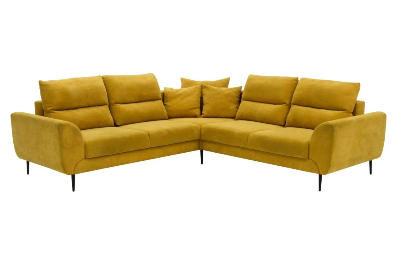 Poziome linie na poduszkach pełnią rolę nie tylko wizualną, ale przede wszystkim zwiększają ergonomię podparcia i zapobiegają migracji pianek. Element rogowy wypełniony trzema poduszkami dekoracyjnymi pozwala na tworzenie różnych aranżacji.