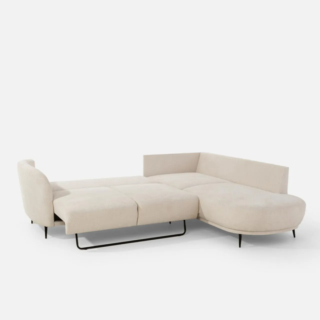 - Pojemnik pod siedziskiem to dodatkowa przestrzeń na pościel i inne domowe tekstylia. Dostęp do niego uzyskasz podczas rozkładania narożnika.
