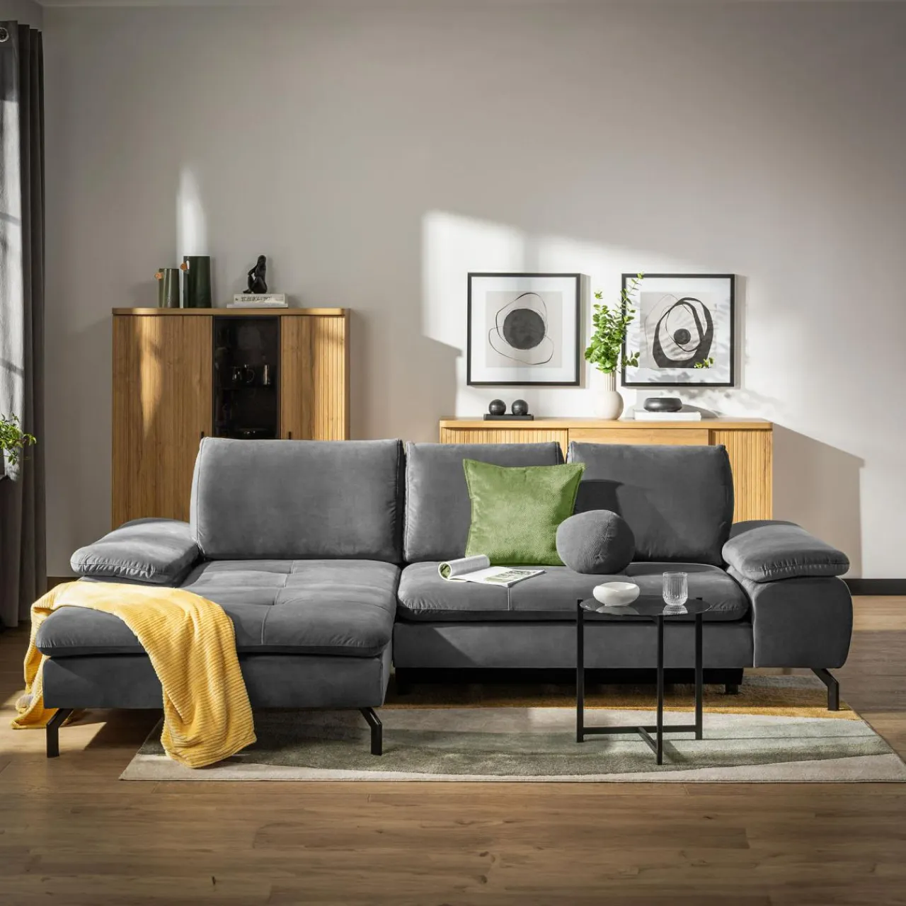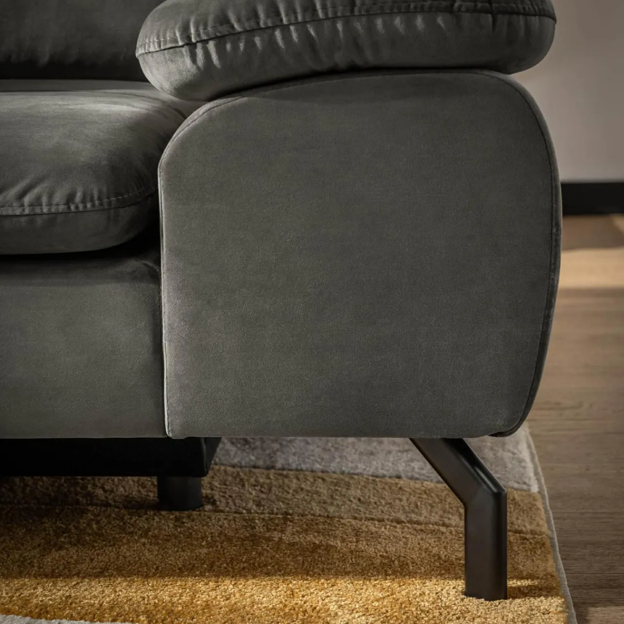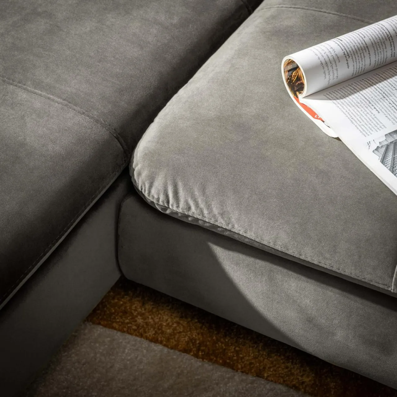 Na siedząco czy na leżąco? Wypoczywaj na narożniku VESPA w sposób, który Ci odpowiada. Aksamitny w dotyku welur umili popołudniowy relaks – aż trudno się oprzeć!