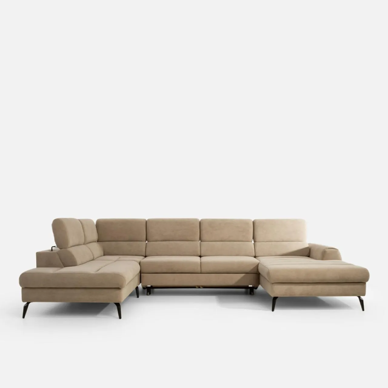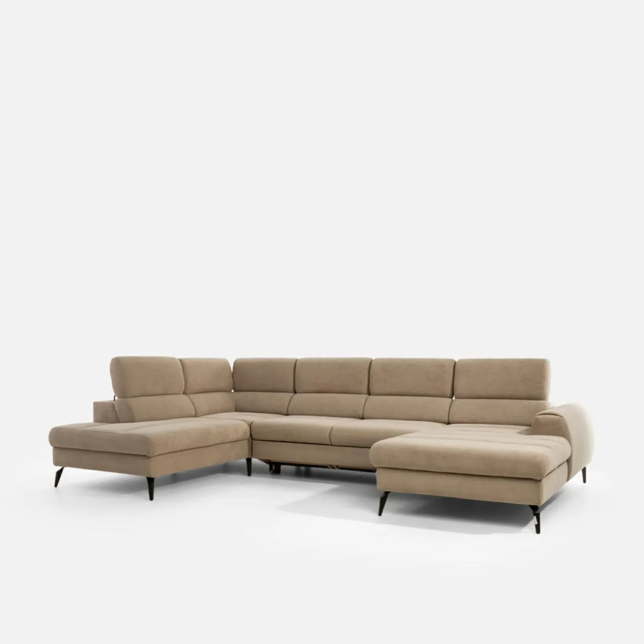 Narożnik JAZZY U2 posiada 2 leżanki, dzięki czemu będzie świetnie prezentować się w przestronnym salonie. Docenisz go za regulowane zagłówki i hydrofobową tkaninę – to idealny duet na rodzinne spotkania.