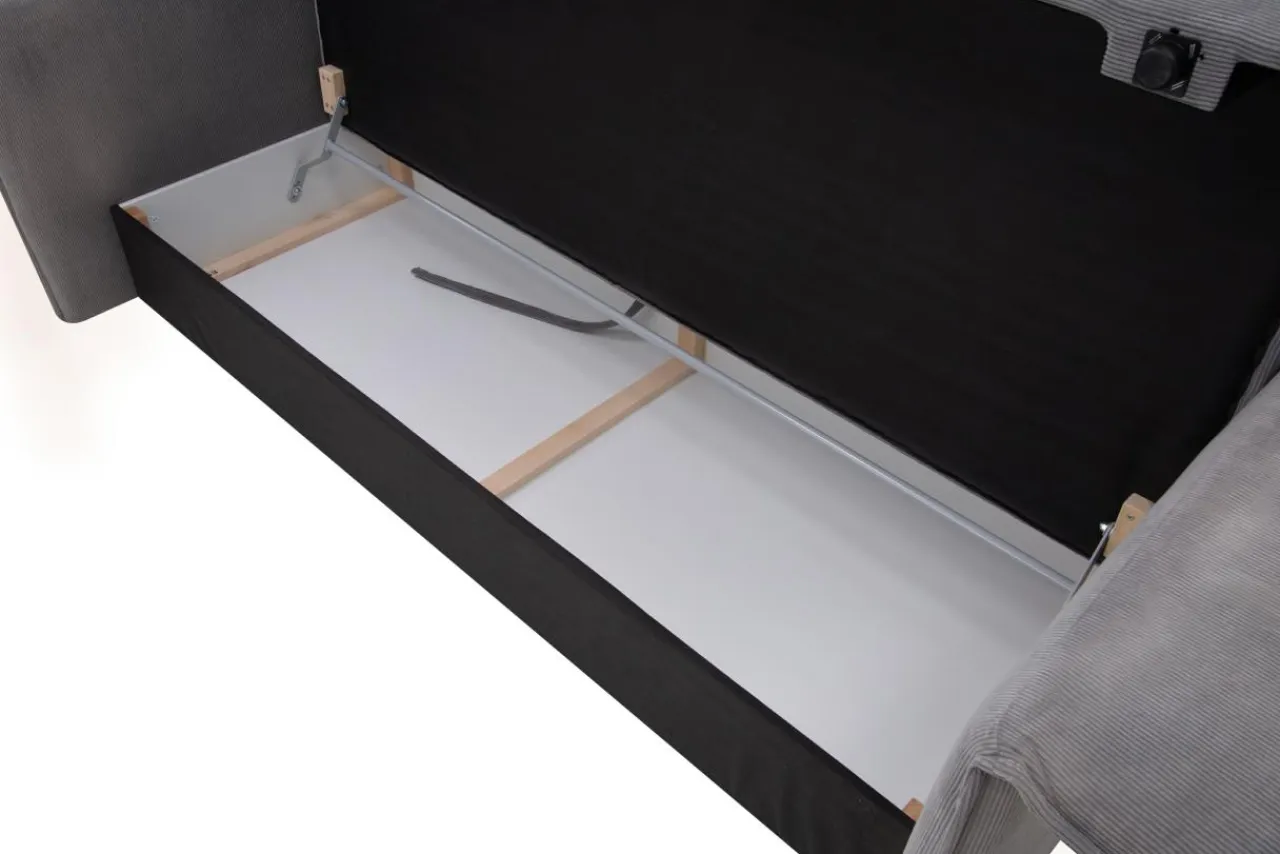 - W pojemniku zlokalizowanym pod siedziskiem schowasz pościel i dodatkowe koce – dzięki którym aranżacja stanie się jeszcze ciekawsza.