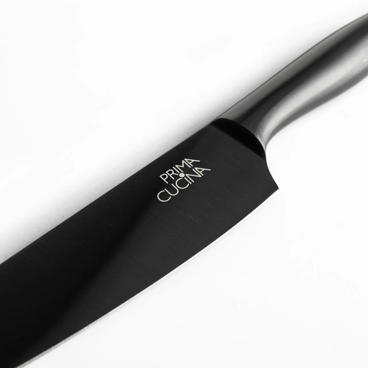 Poczuj się jak prawdziwy szef kuchni w restauracji! Nasz nóż szefa kuchni TOKYO z czarnym eleganckim wykończeniem zapewni profesjonalizm i precyzję, których potrzebujesz do mistrzowskiego gotowania. Doskonale sprawdzi się przy przygotowywaniu różnych potraw – od klasycznych dań po nowoczesne kreacje kulinarne, otwierając przed Tobą nowe możliwości i wzbogacając Twoje przepisy o wyjątkowe smaki i techniki.