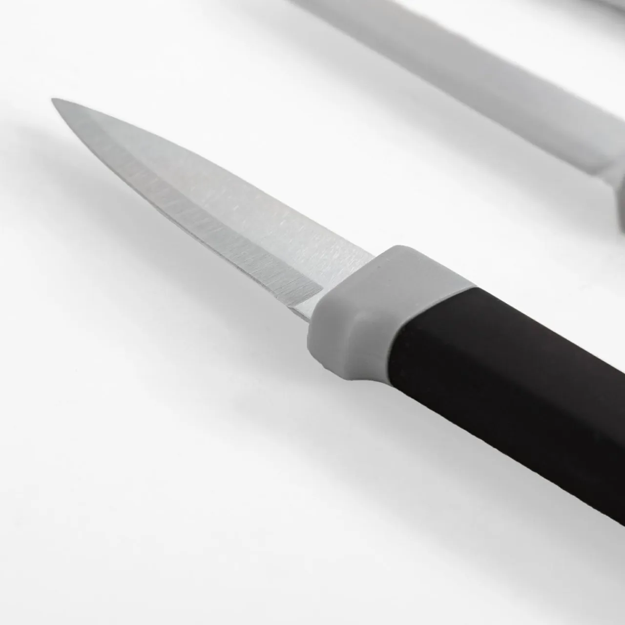 Praktyczny i wytrzymały zestaw 3 noży kuchennych, doskonale sprawdzi się w codziennym użytkowaniu. Każdy nóż został zaprojektowany z myślą o różnych potrzebach kulinarnych – od krojenia większych kawałków mięsa czy warzyw, po precyzyjne obieranie i siekanie. Noże wykonane są ze stali nierdzewnej, zapewniającej doskonałą ostrość, a ergonomiczne rękojeści z powłoką TPR gwarantują wygodę i pewny uchwyt.
