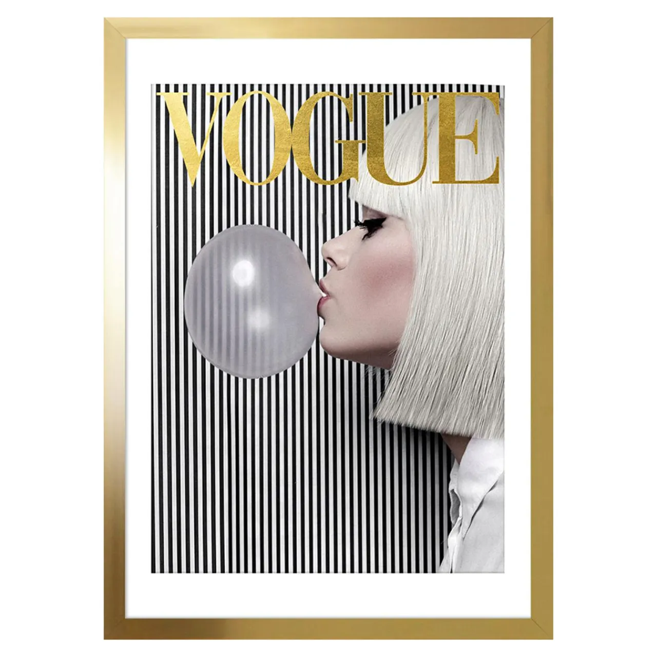 Chcesz, by Twój salon lub sypialnia zyskały bardziej nowoczesny wygląd? Obraz GOLDEN VOGUE w złotej ramie będzie się wyjątkowo prezentował na tle granatowej oraz białej ściany.