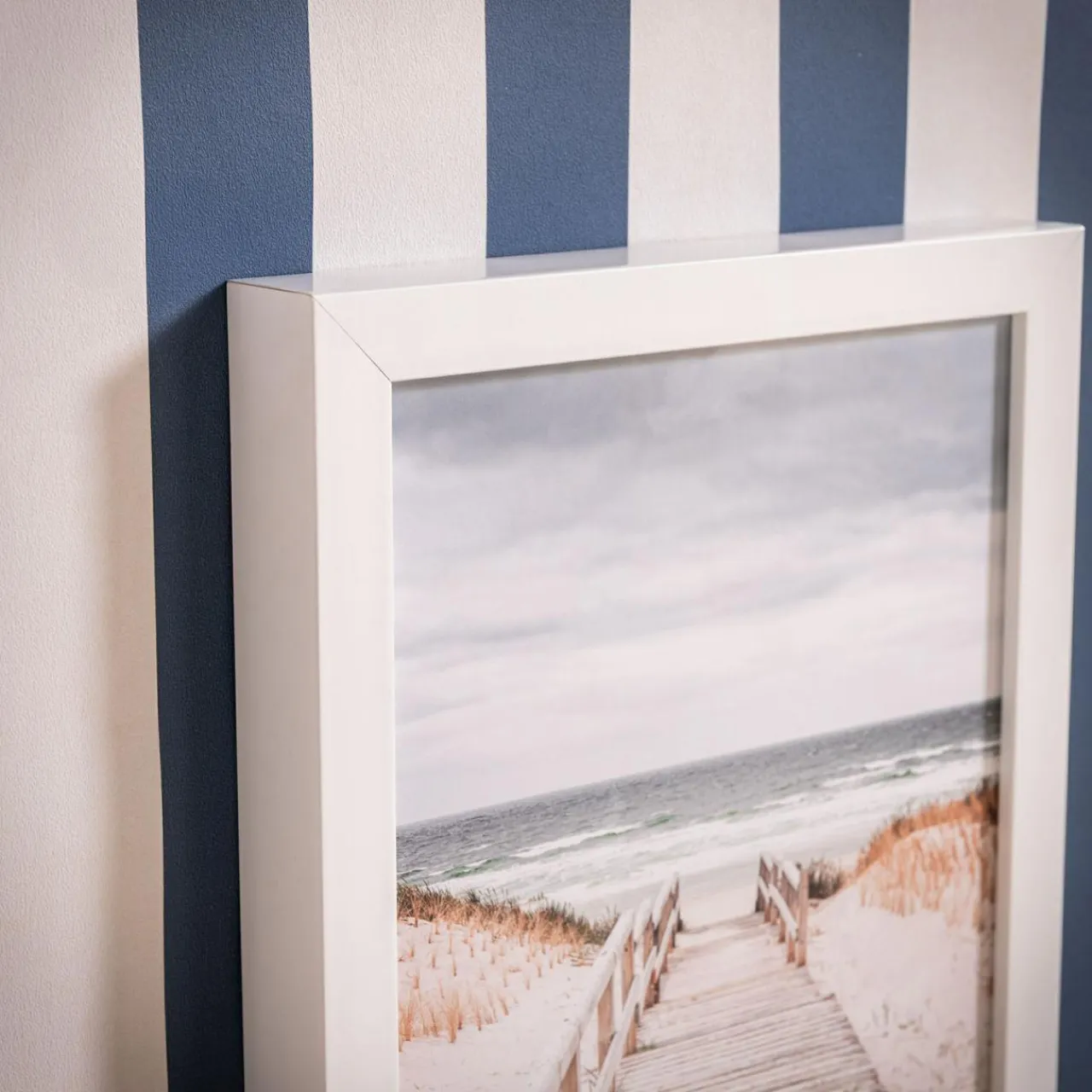 - Biała rama odbije światło – będzie się ładnie prezentować na ciemniejszej ścianie.