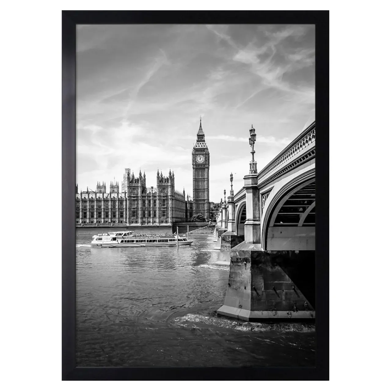 - Przedstawia widok na londyńskie miasto. Spodoba się osobom, które lubią czarno-białe dekoracje.