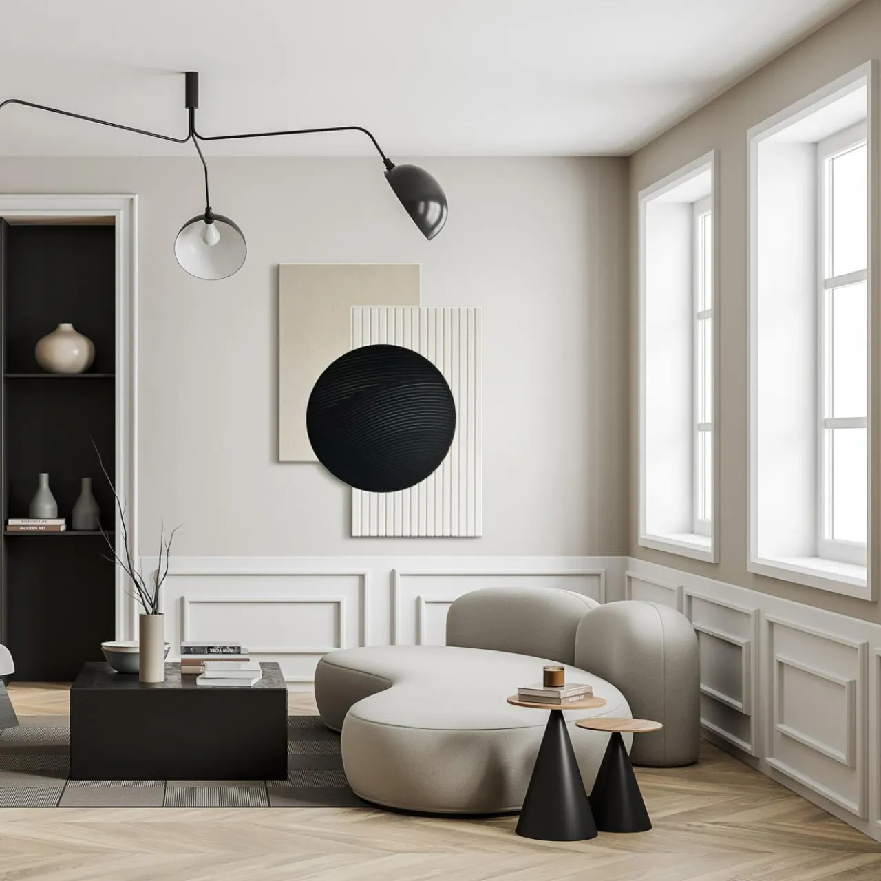 Obrazy ACOUSTIC FORM wyróżnia się nie tylko ciekawą kompozycją, ale pomaga wytłumić pomieszczenie. Ma właściwości dźwiękoszczelne.