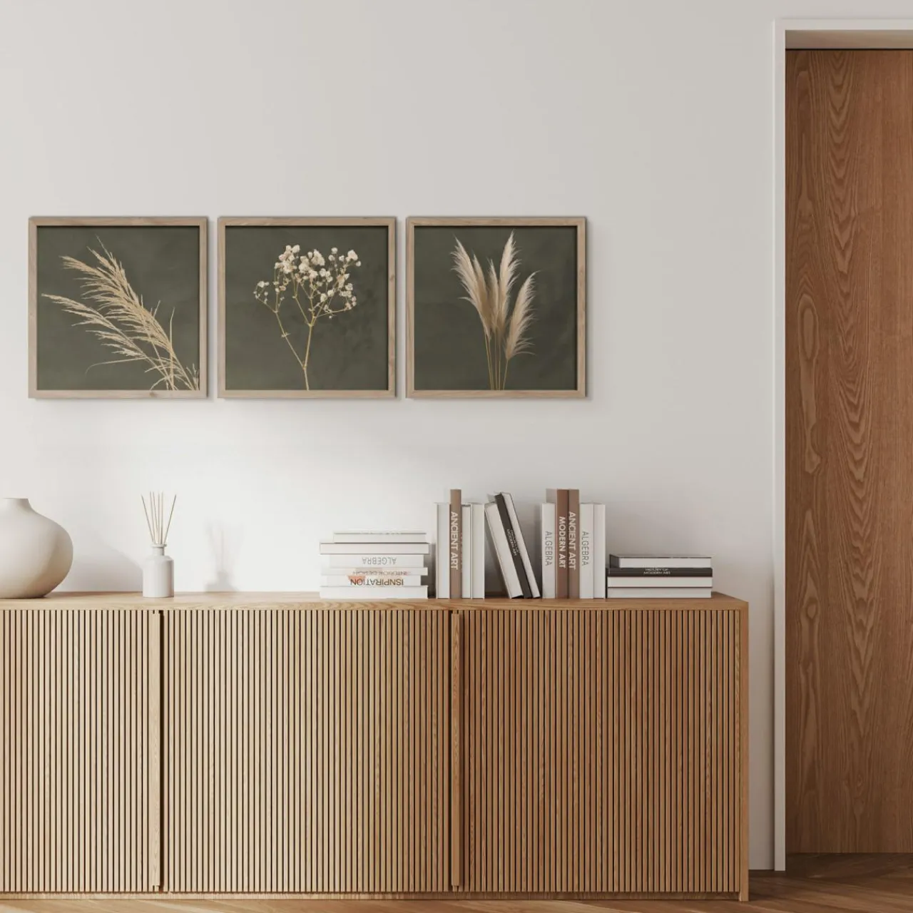 Obrazy WALL PAMPAS wyróżnią się na tle jasnej aranżacji. Będą pasować do kremowych, białych lub beżowych ścian.
