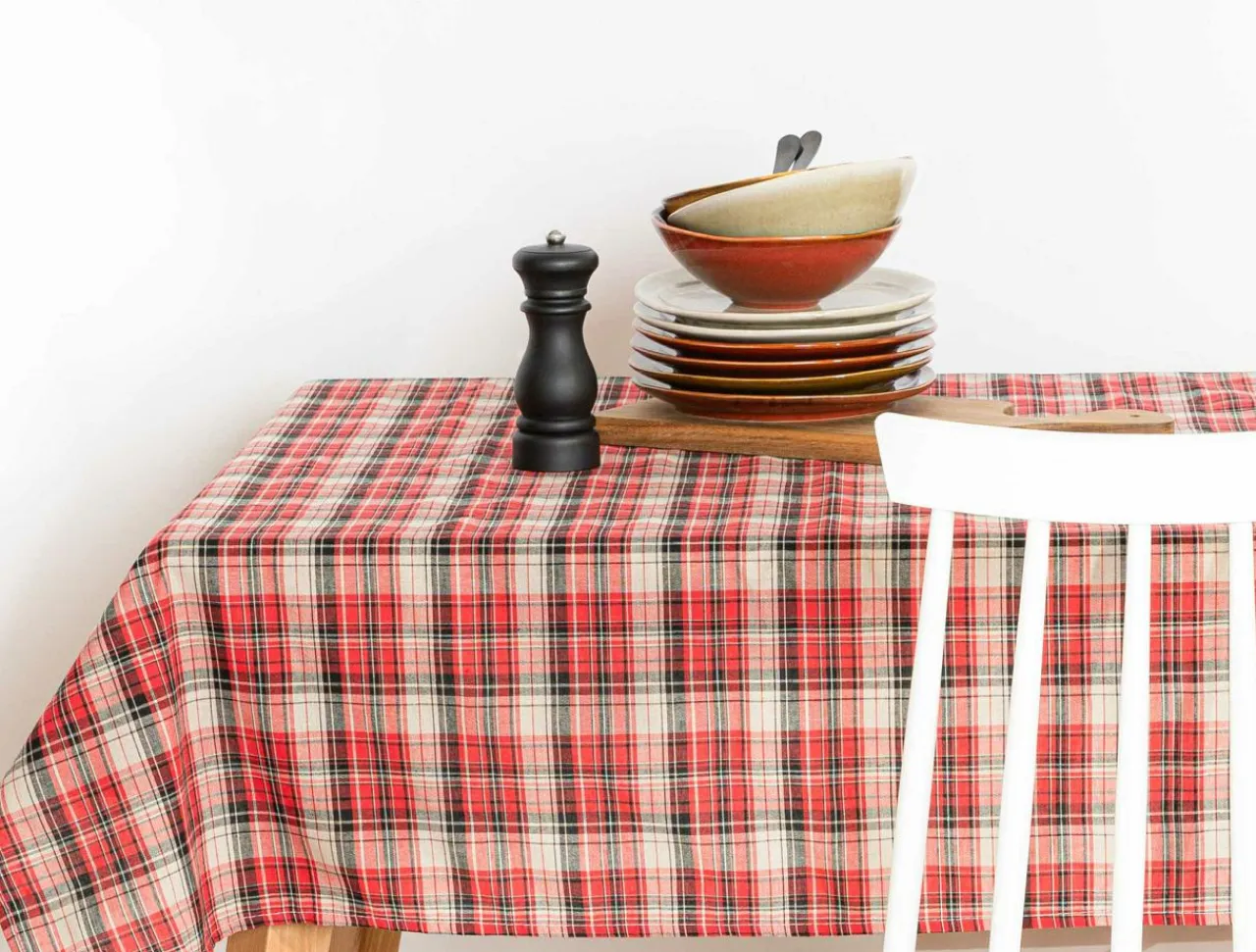 Stół w swoim salonie lub jadalni udekoruj obrusem z wzorem czerwonej, szkockiej kraty.