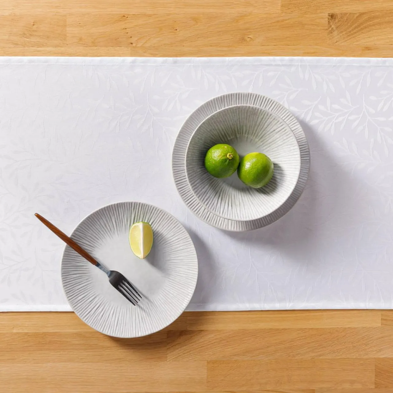 Dzięki subtelnemu wzorowi oraz uniwersalnej kolorystyce obrus wprowadza do wnętrza lekkość i świeżość, dodając mu elegancji i harmonii.