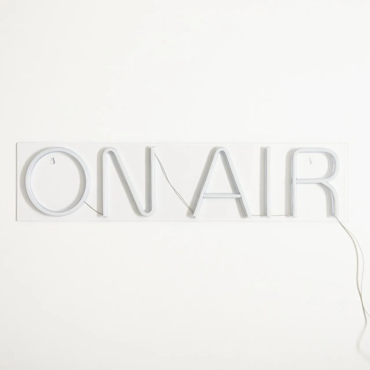 Kiedy NEON ON AIR jest zgaszona jest tylko biała ozdoba, natomiast zaświecona rozjaśni pokój intensywnym światłem w odcieniach błękitu i różu.