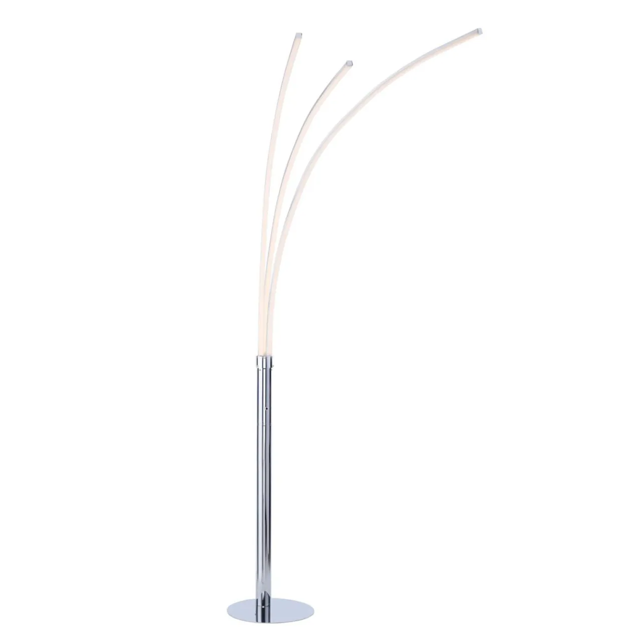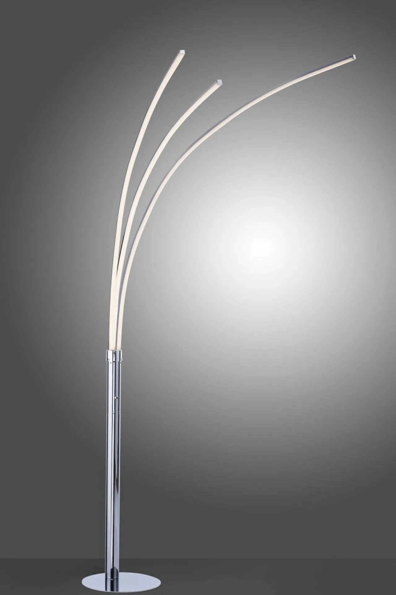 Metalowa podstawa lampy wykończona w kolorze chrom posiada trzy ramiona, z zintegrowanym oświetlenie typu LED. Każde z ramion emituje światło o ciepłej temperaturze barwowej 3000K. Strumień świetlny lampy wynosi 1320 lumenów.