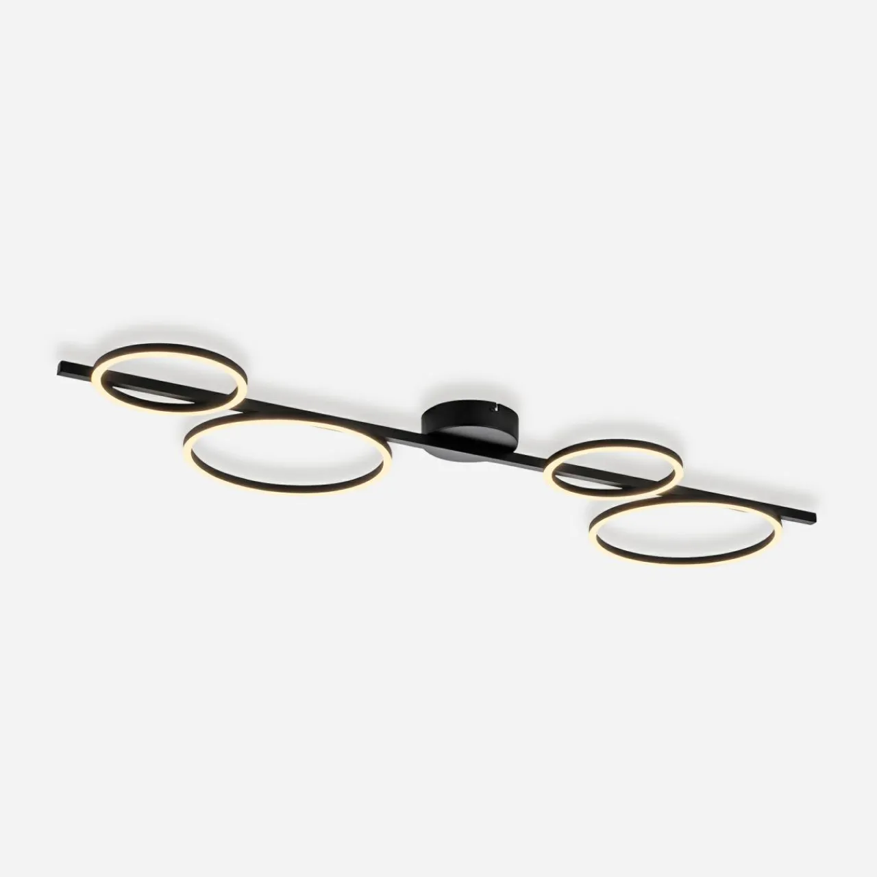 - 4 pierścienie umieszczone na montowanej pod sufitem listwie dodadzą nowoczesnej stylizacji do Twojego salonu lub jadalni.