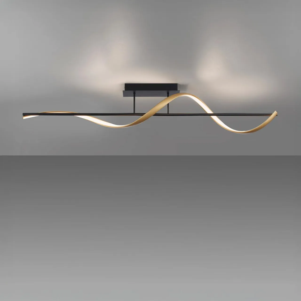 Czarno-złota oprawa dodaje Q-SWING oryginalnego wykończenia. Czasem mniej znaczy więcej, zwłaszcza w odniesieniu do ozdobnych walorów lampy, w której zastosowane materiały oraz stylistyka tworzą niepowtarzalny efekt.