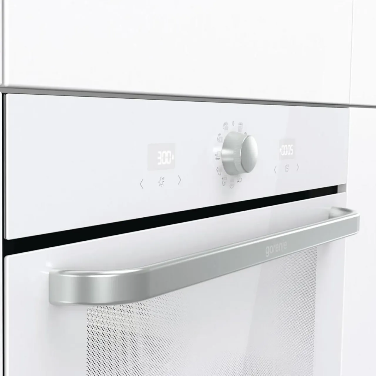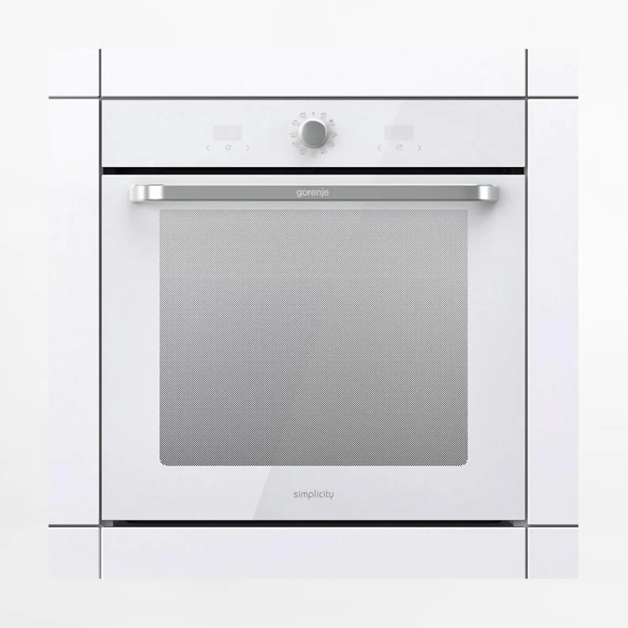 Nowoczesny piekarnik BOS6737SYW w białym kolorze z funkcją SIMPLICITYCONTROL łączy sterowanie dotykowe z podświetlanym pokrętłem, oferując łatwą obsługę i automatyczne ustawienia.