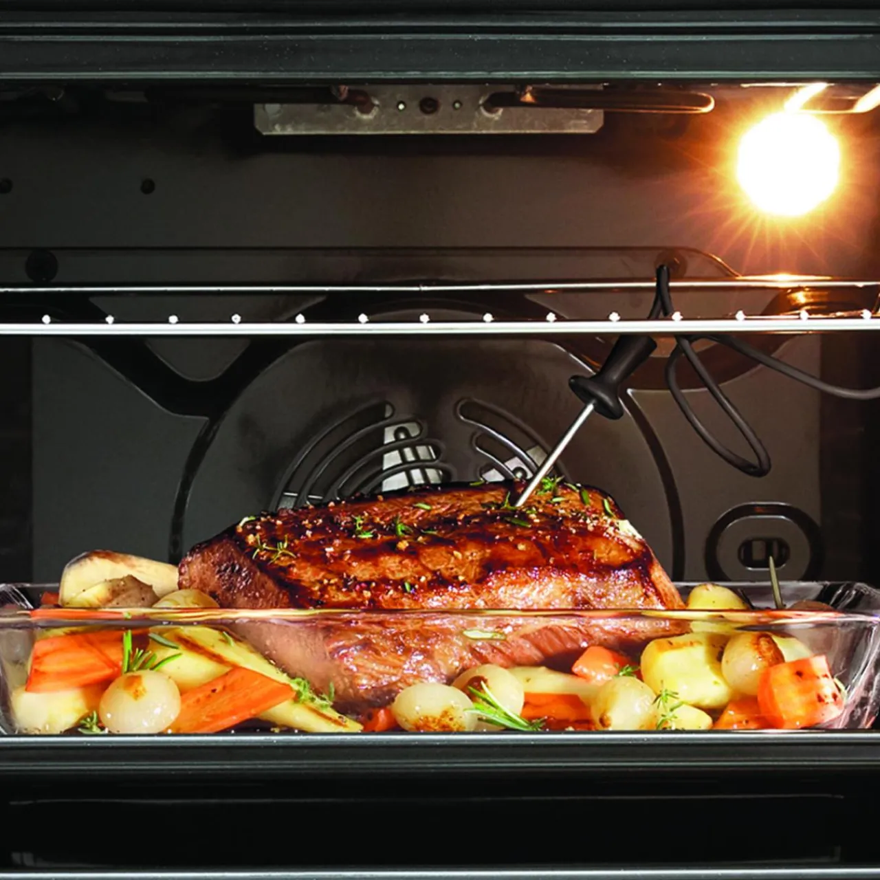 W skład wyposażenia piekarnika wchodzą: termometr do żywności i 2 blachy do pieczenia.
