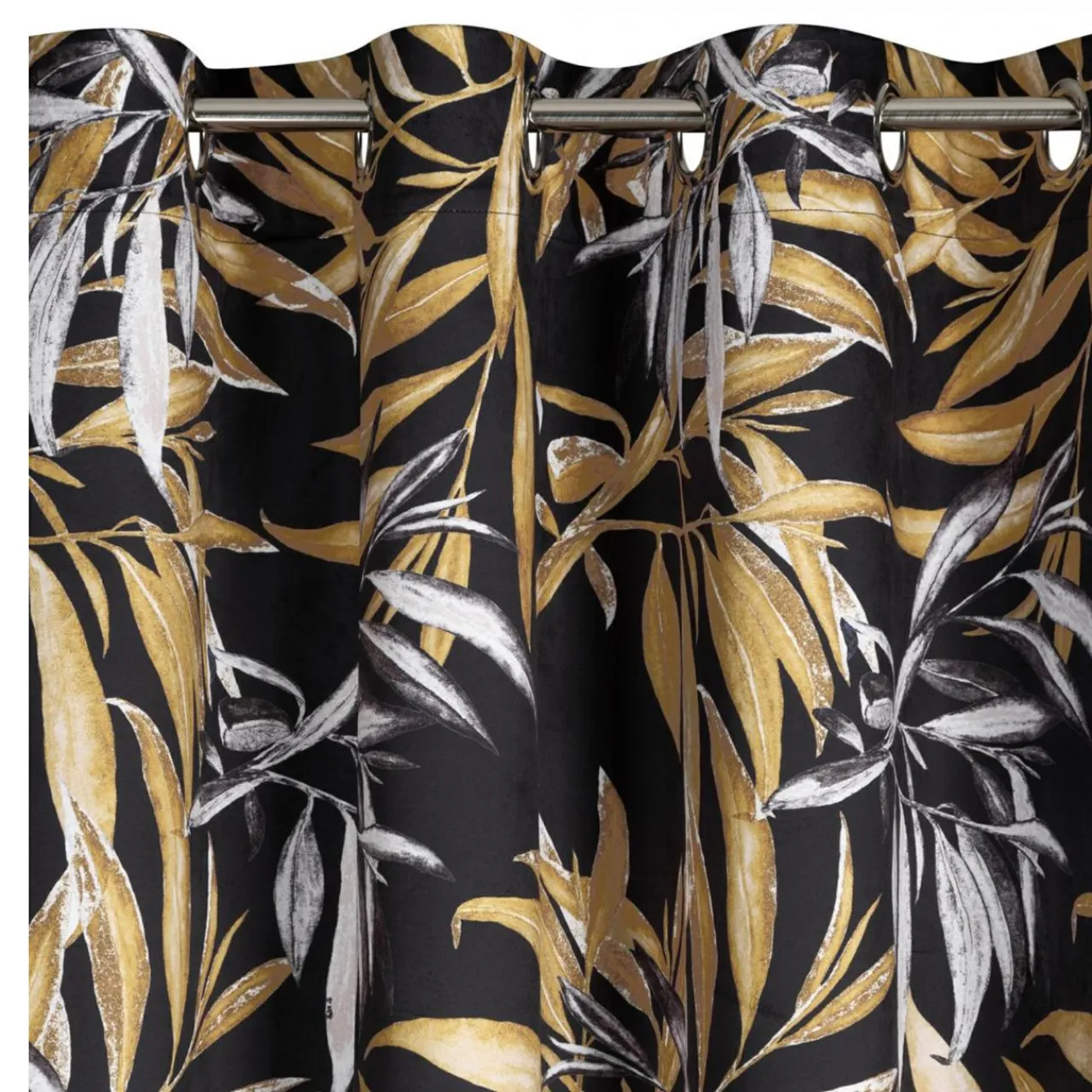 - Czarne tło zasłony ZOJA wprowadzi do sypialni nutę tajemniczości.