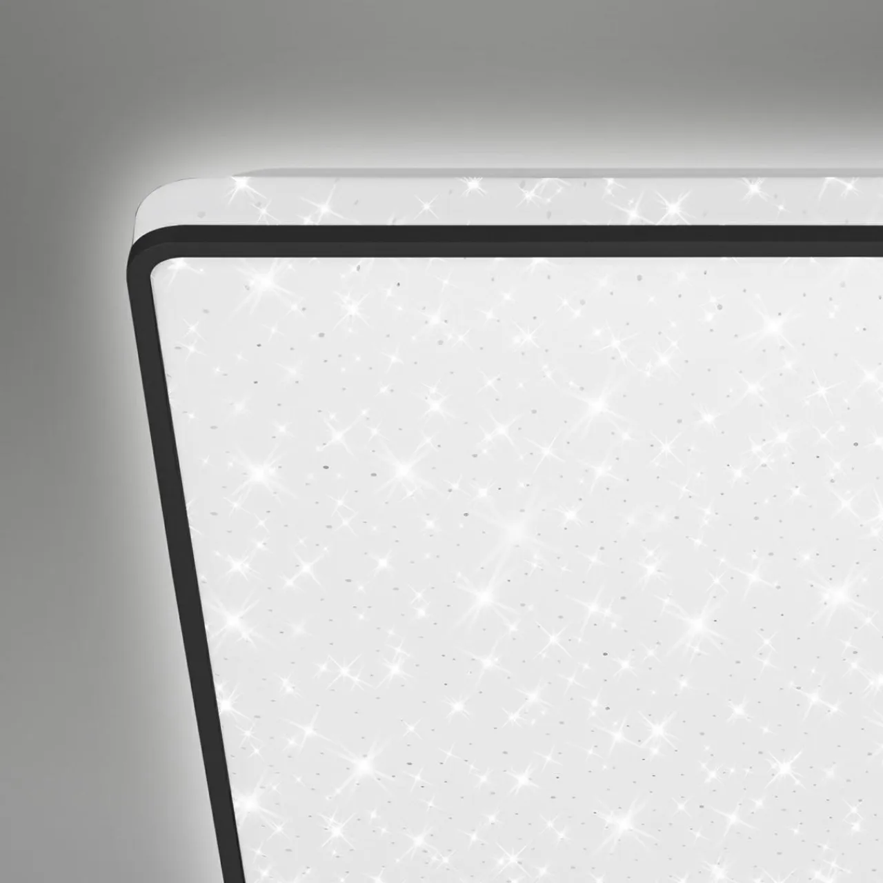 Ramka okalająca plafon jest czarna. Wykończenie to spełnia również dodatkową rolę. Buduje kontrast zwłaszcza po włączeniu lamy, kiedy to uwypukla podświetlenie brzegów.