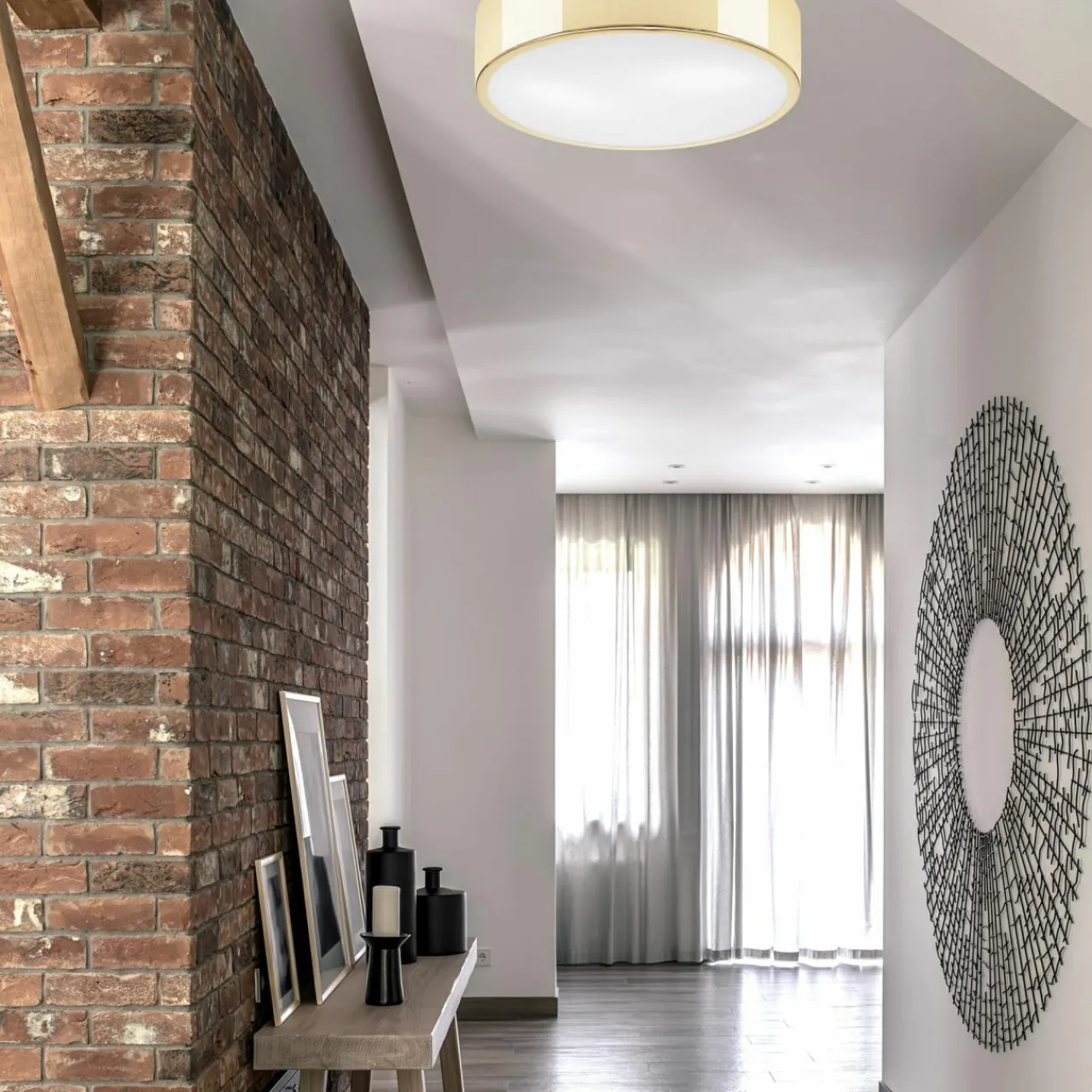 Jest doskonałym wyborem do pomieszczeń, w których ważne jest odpowiednie naświetlenie. Zawieś ją więc w przedpokoju, sypialni, gabinecie lub każdym innym miejscu, w którym będzie doskonale widoczna. Połącz z bielą ścian, naturalną kolorystyką drewna lub żywą zielenią roślin.