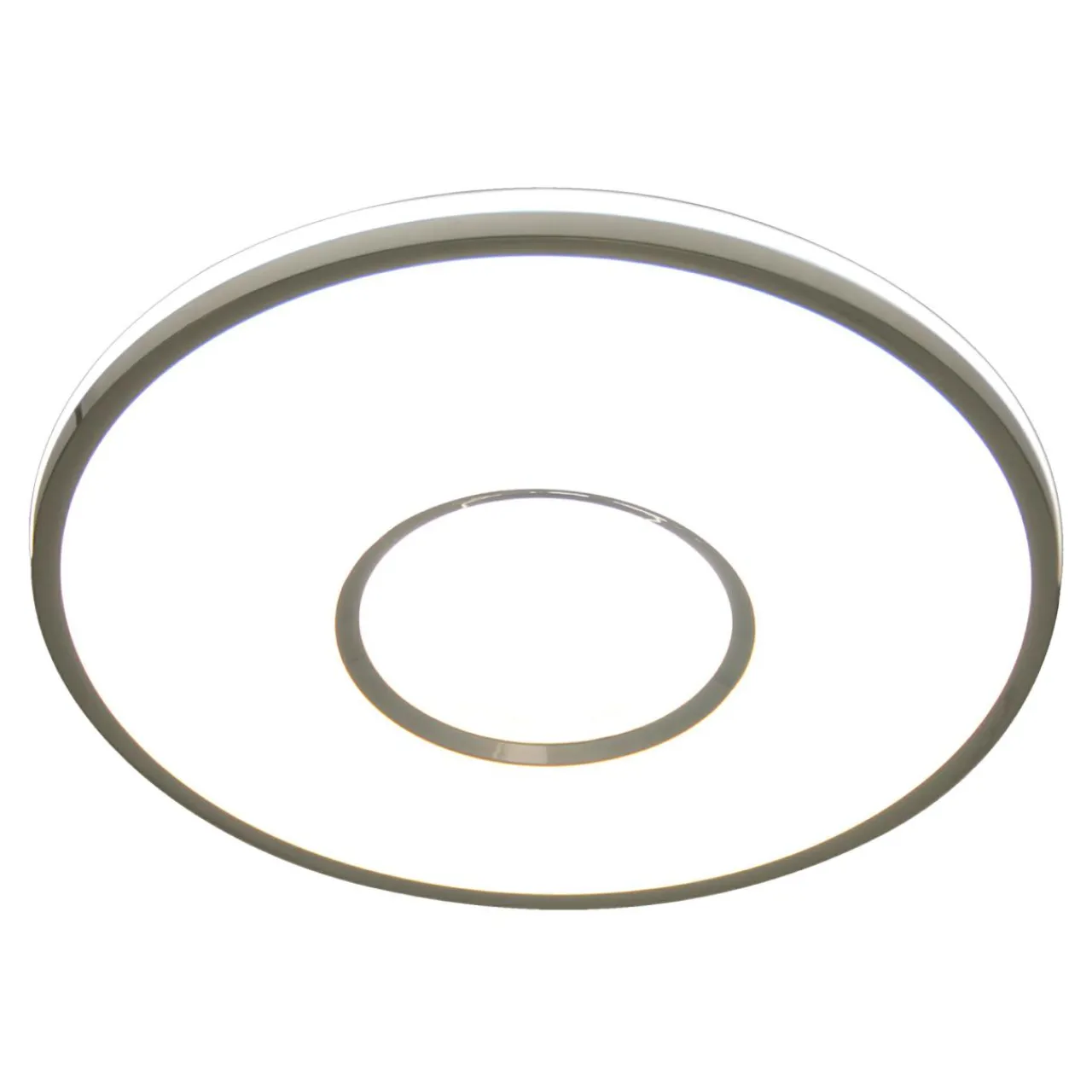 Okrągły kształt to już klasyka. Jednak w przypadku plafonu LEON został on jednak wzbogacony chromowanym obramowaniem przy brzegach oraz w środkowej sekcji okręgu.
