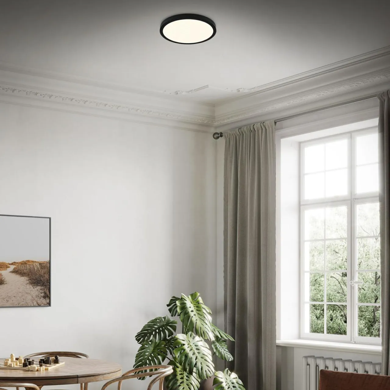 Plafon RUNA najlepiej prezentuje się w pomieszczeniach, które pozwolą Ci w pełni wykorzystać jego możliwości. Zawieś go więc w salonie, sypialni lub jadalni.