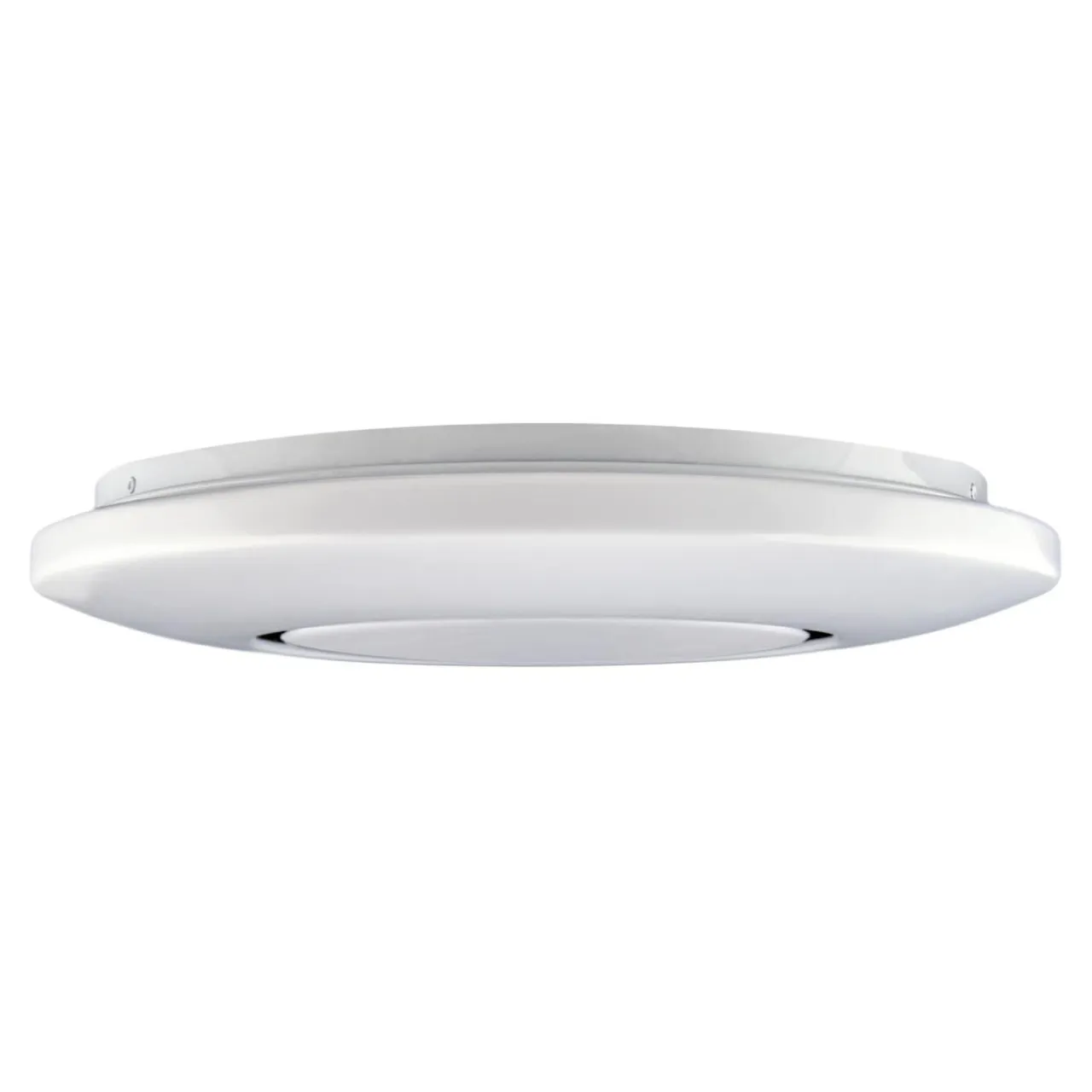Dzięki połączeniu blachy stalowej i tworzywa plafon RINGE jest niezwykle lekki. Posiada wbudowane oświetlenie typu SMD LED, które rozjaśnia przestrzeń światłem o barwie 4000K – idealnym dla wszelkiego rodzaju codziennych aktywności. Jego strumień świetlny wynosi 2130 lumenów.