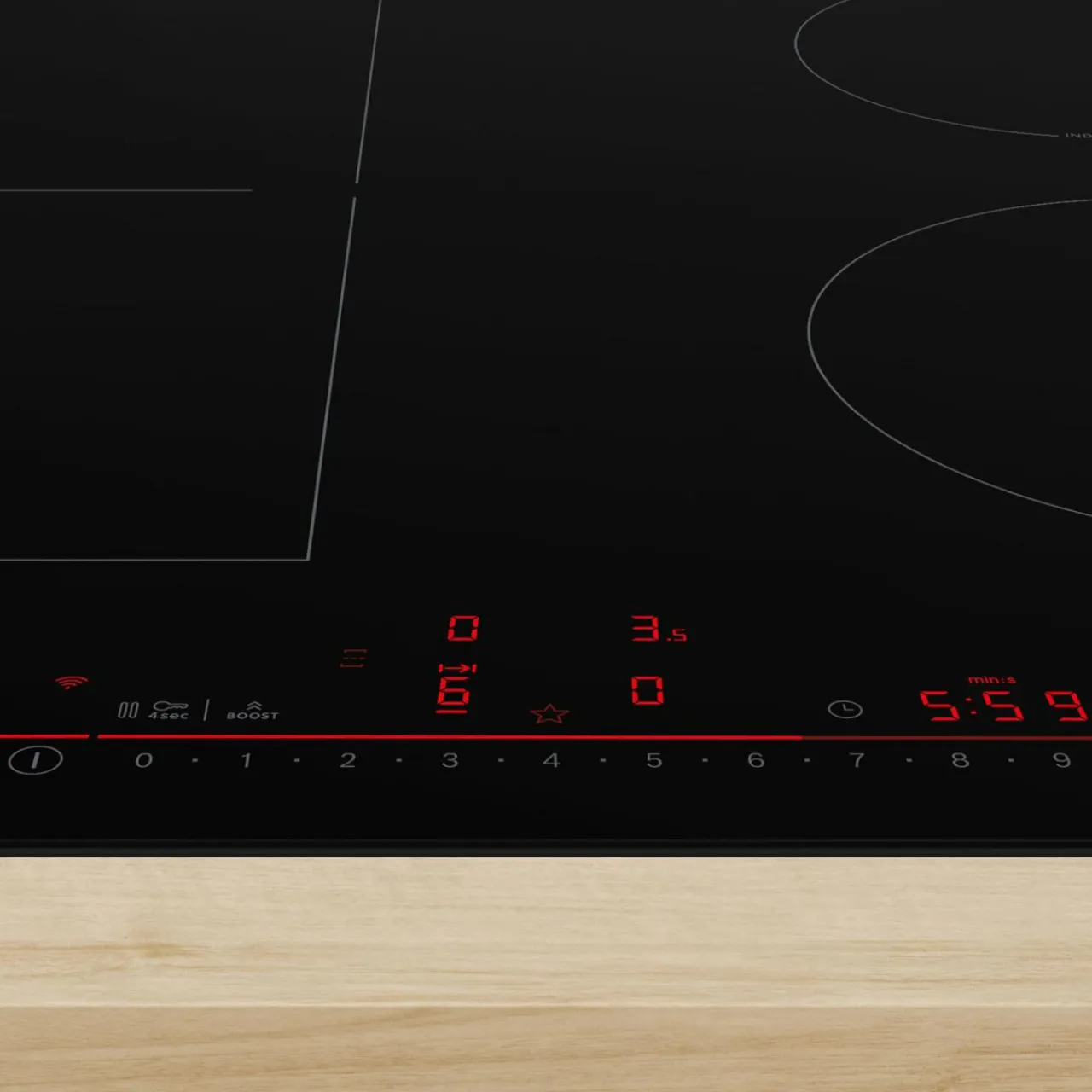 Pozwala na sprawnie sterować funkcjami płyty grzewczej za pośrednictwem panelu dotykowego. Pozwala ustawić timer (dla każdego pola grzejnego), minutnik oraz funkcję pauzy.