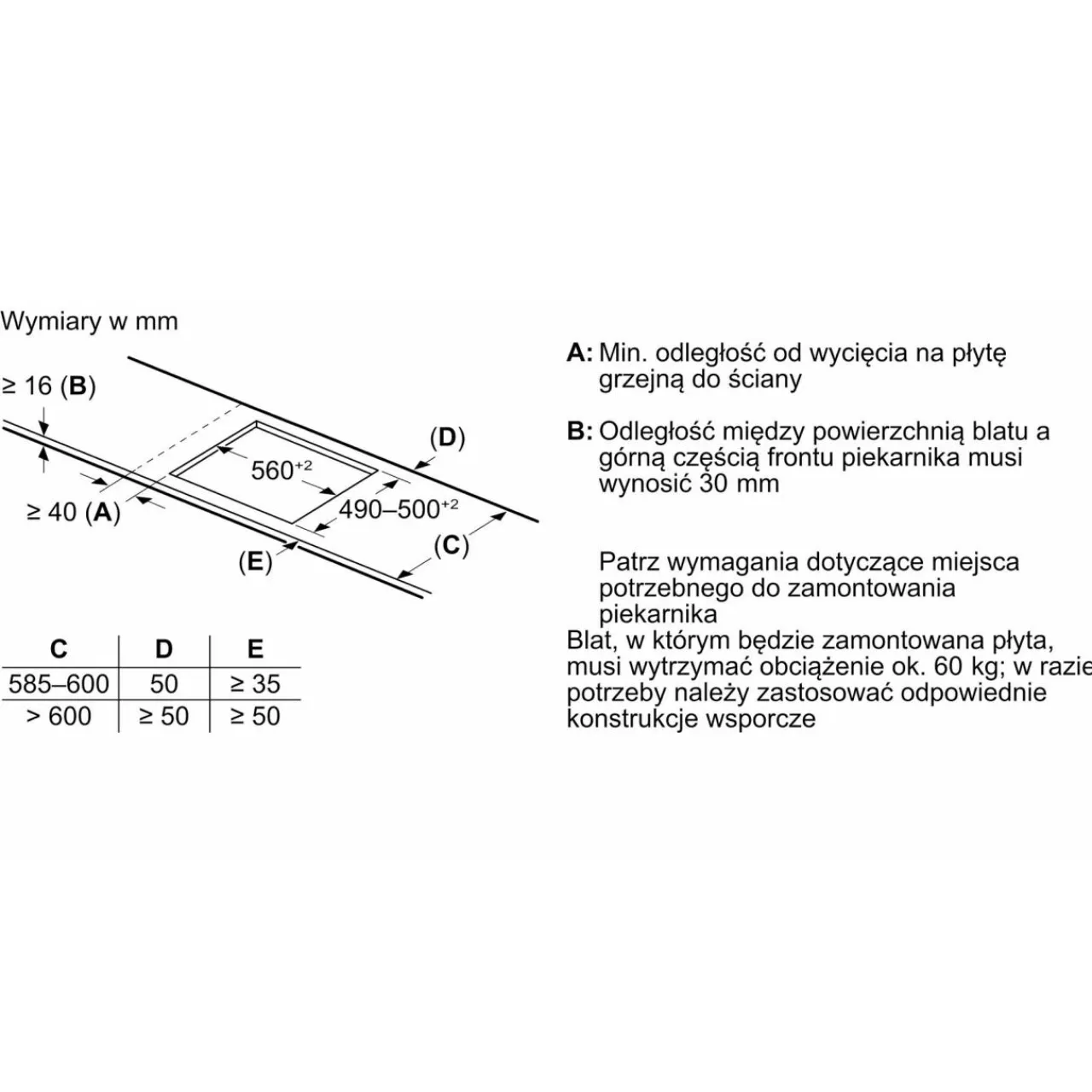 - Wielkość i moc strefy grzewczej: strona prawa, tylna: 145 mm , 1.6 kW (maks. moc 2.2 kW)