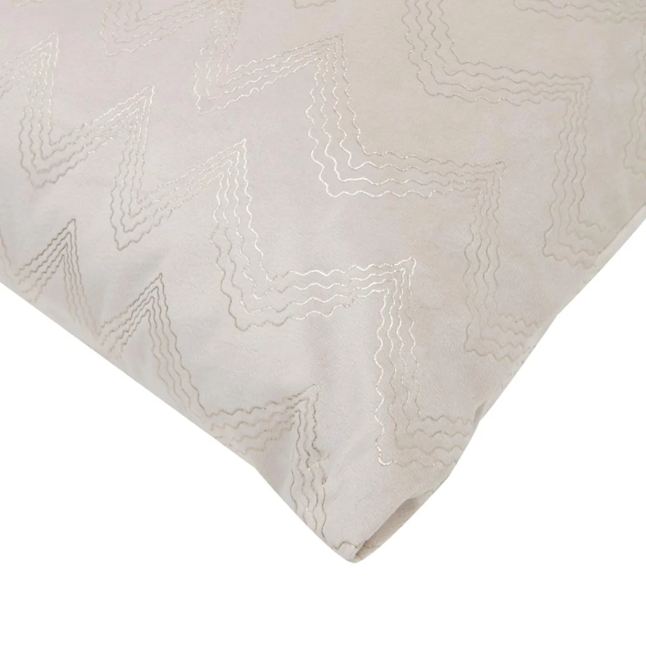 Materiał wierzchni poduszki to kremowy welur, dlatego jest wyjątkowo miękka i przyjemna w dotyku.