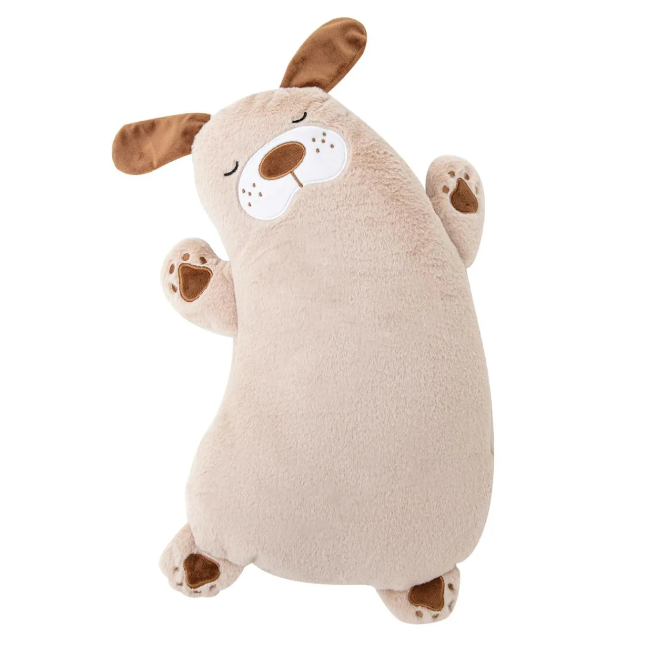 - Poduszka w kształcie śpiącego pieska pozostanie przy dziecku na dłużej – poliestrowy materiał jest trwały i ma większą odporność na ścieranie.