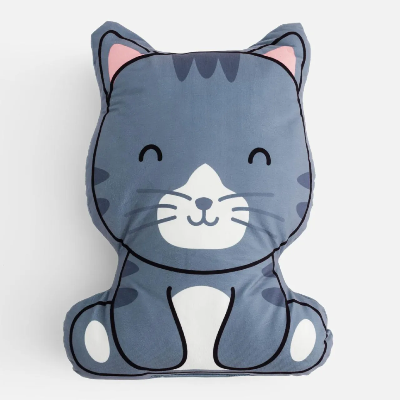 - Poduszka do przytulania ułatwi wyciszenie przed zaśnięciem – jest miękka w dotyku, a jej nieregularny kształt pozwoli miło się w nią wtulić. Opowiedz dziecku o kolejnej przygodzie ciekawskiego kotka, by miał wesołe sny!