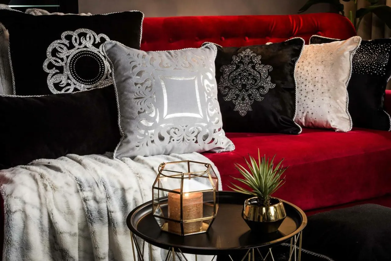 - Zaskakujący efekt można uzyskać łącząc poduszki o różnych wzorach i kolorach. Kolekcje Deszczyk, Sorrento, Witraż, Irys i Gładka zestawione z sobą tworzą spójną, niepowtarzalną aranżację doskonale uzupełniając wnętrza w stylu glamour;