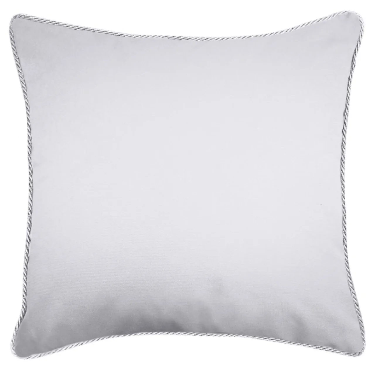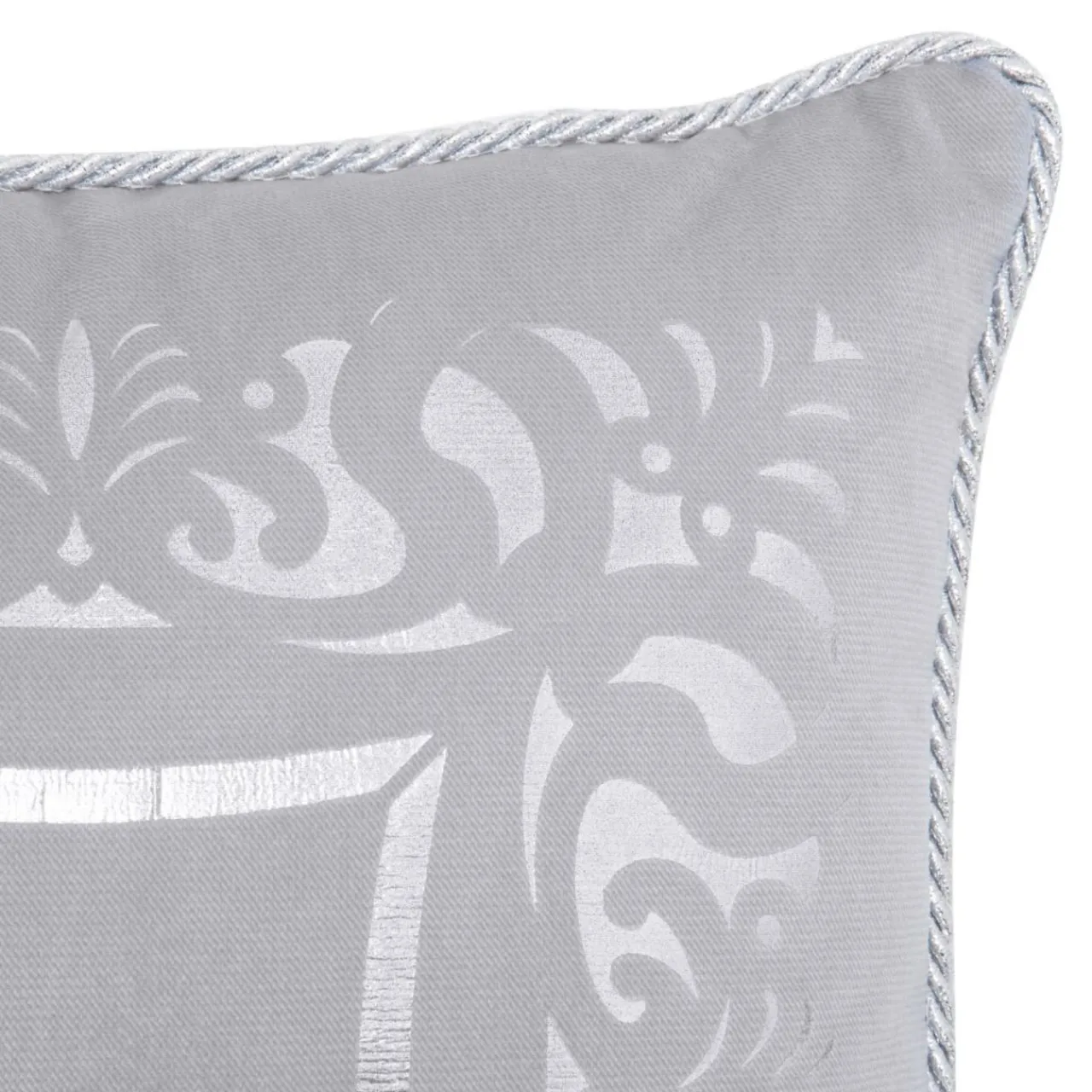 - Poduszka jest z trzech stron starannie obszyta srebrnym, brokatowym sznurem dekoracyjnym o grubości 8 mm;