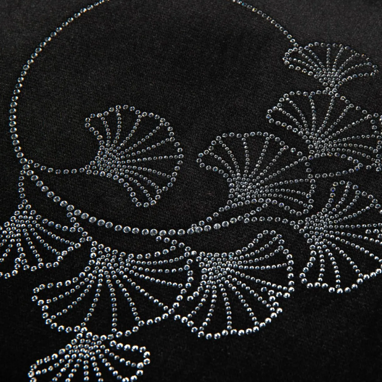 - Czarna poduszka z błyszczącym wzorem pasuje do aranżacji w stylu glamour.