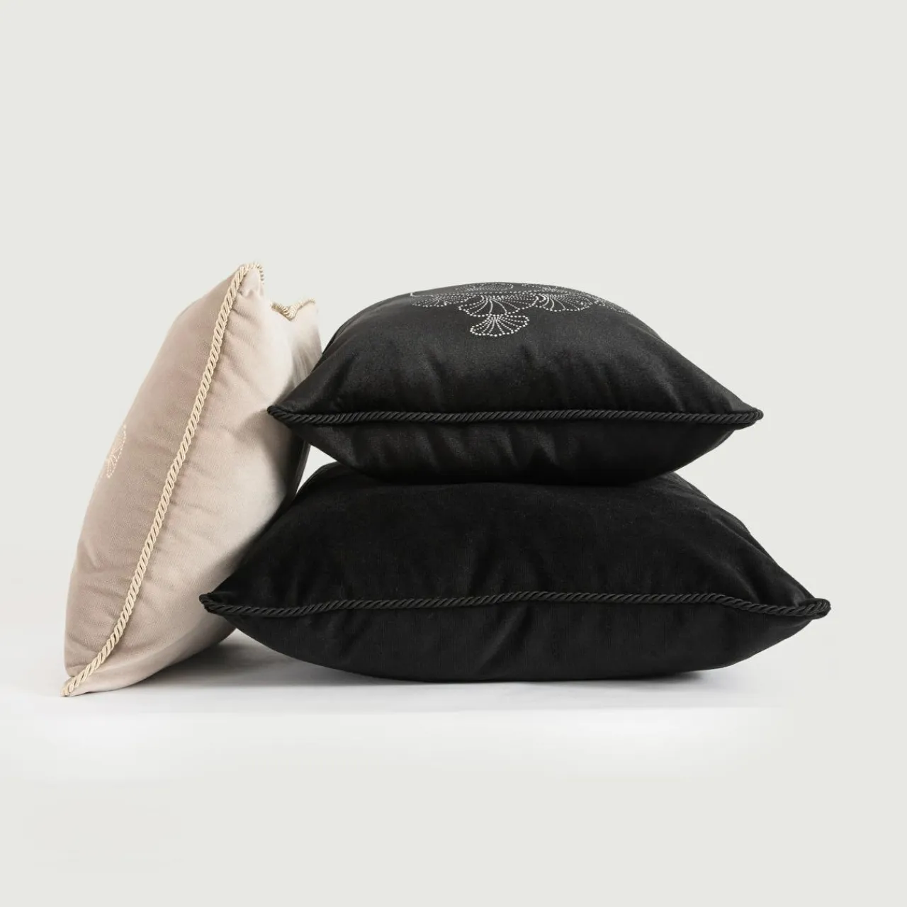 - Trzy brzegi są obszyte złotym sznurkiem. Poduszka FLOWERS prezentuje się elegancko