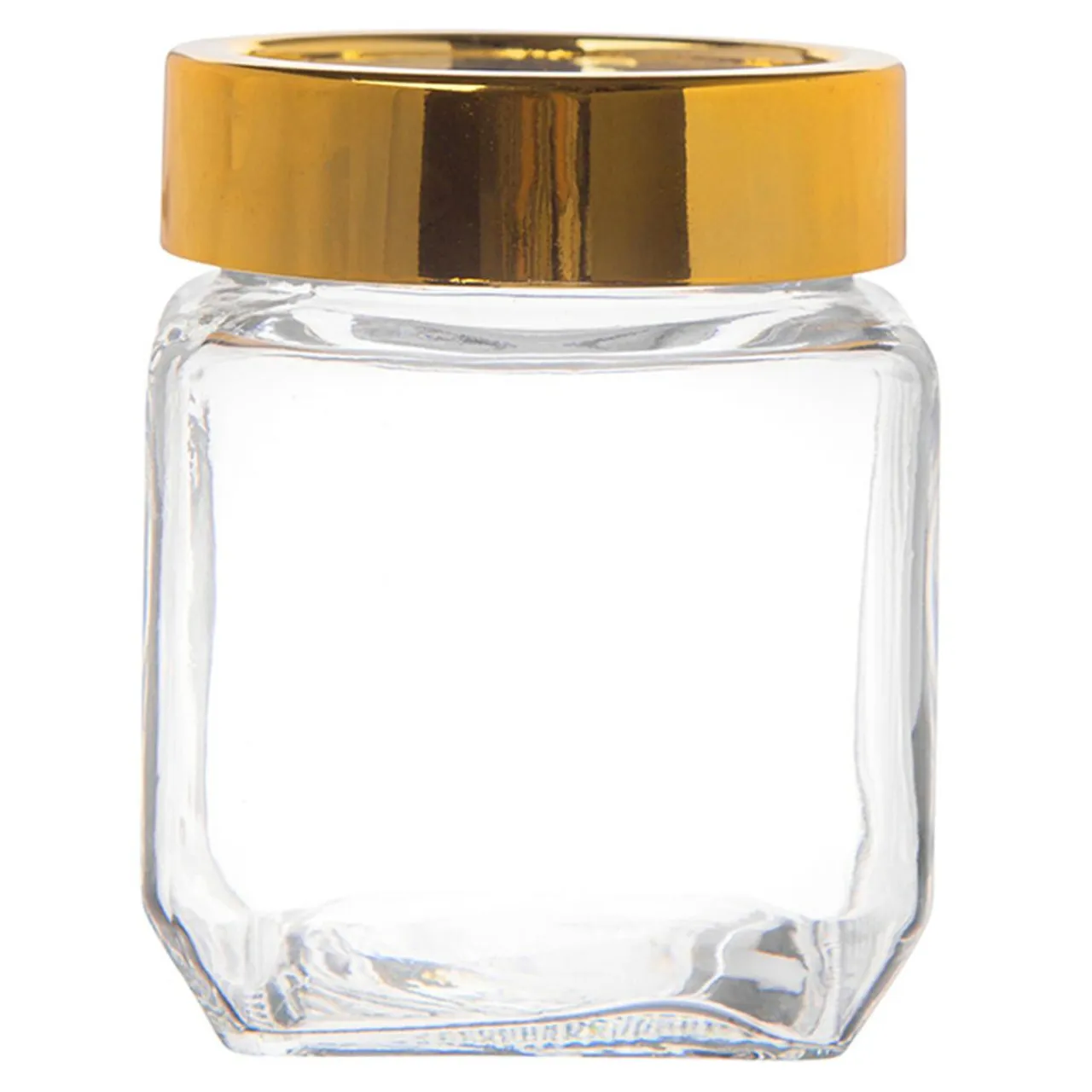 Pojemniki Na Żywność| Szkany pojemnik do żywności ze złotą pokrywką 500 ml