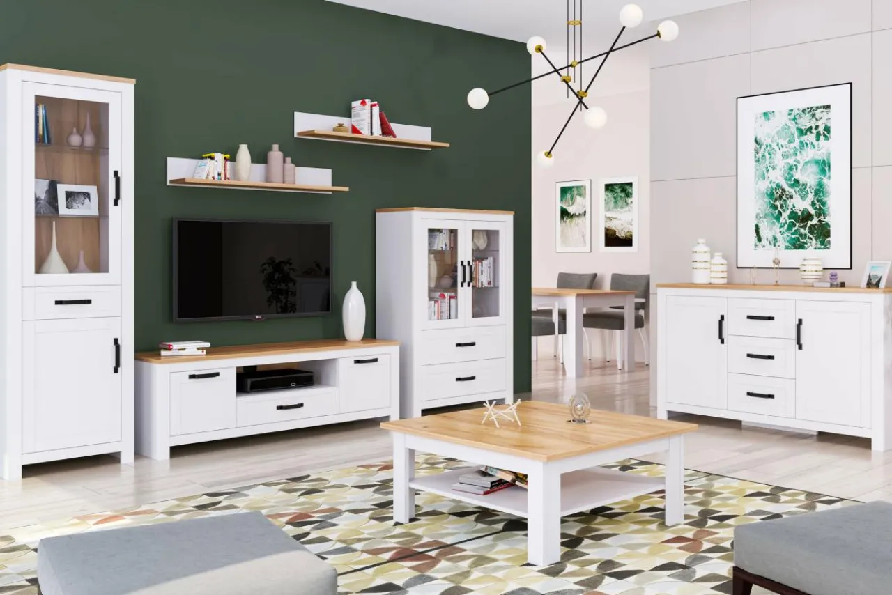 Półkę można zestawić z innymi meblami kolekcji, jednak sprawdza się również jako pojedynczy mebel, który można dopasować do własnej aranżacji pomieszczenia.