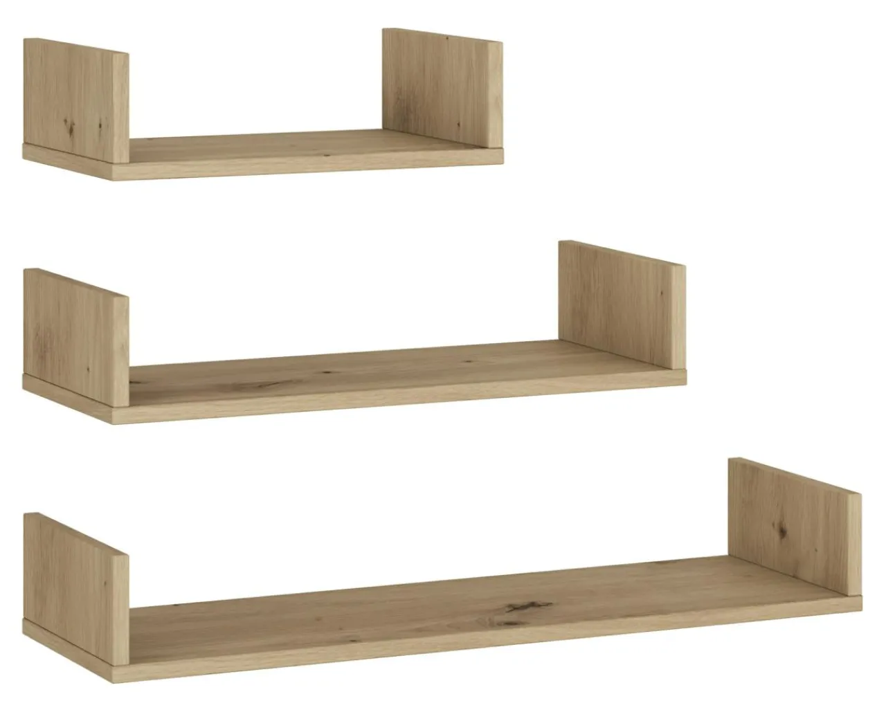 Półki w całości wykończone są laminatem imitującym drewno w kolorze dąb artisan. Będzie pasowała do wnętrz w stylu nowoczesnym i skandynawskim.