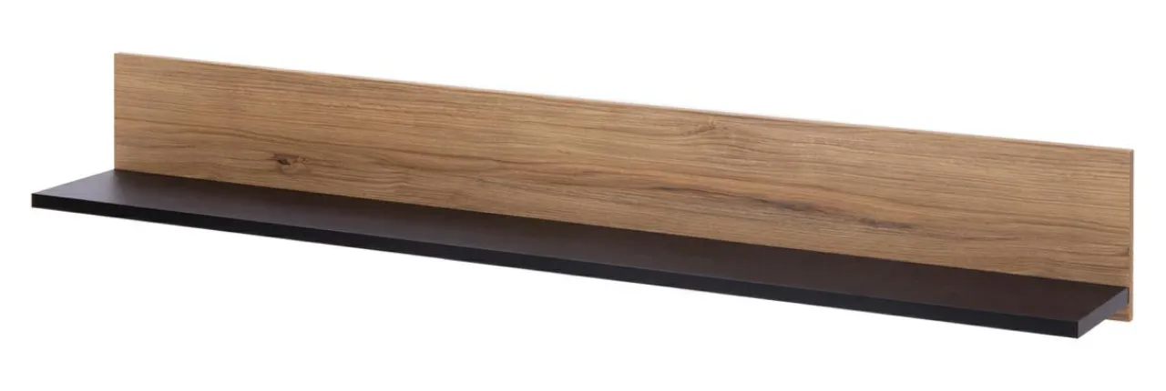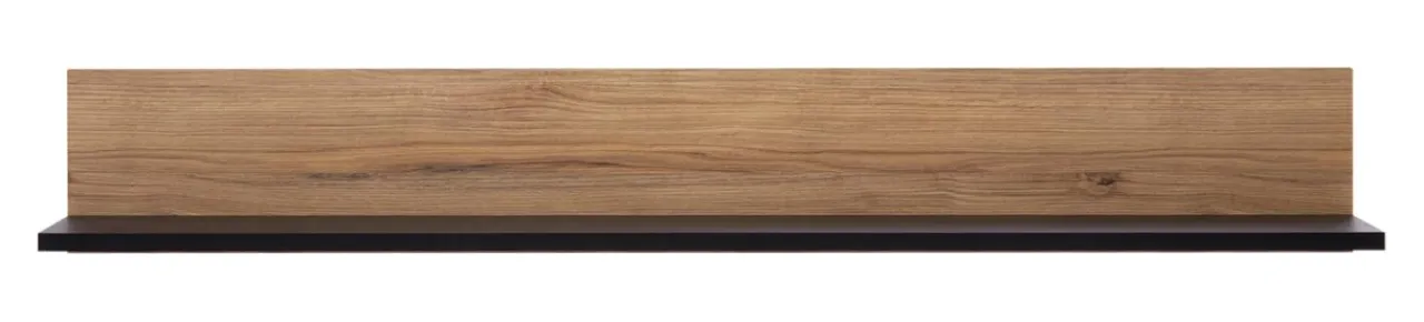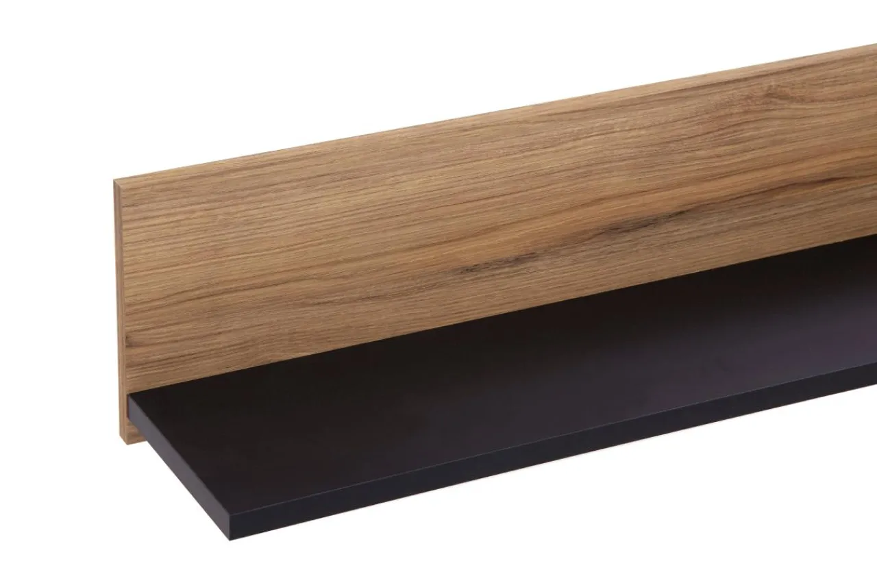 - Półka wykończona jest laminatem w kolorze dąb catania i czarnym.