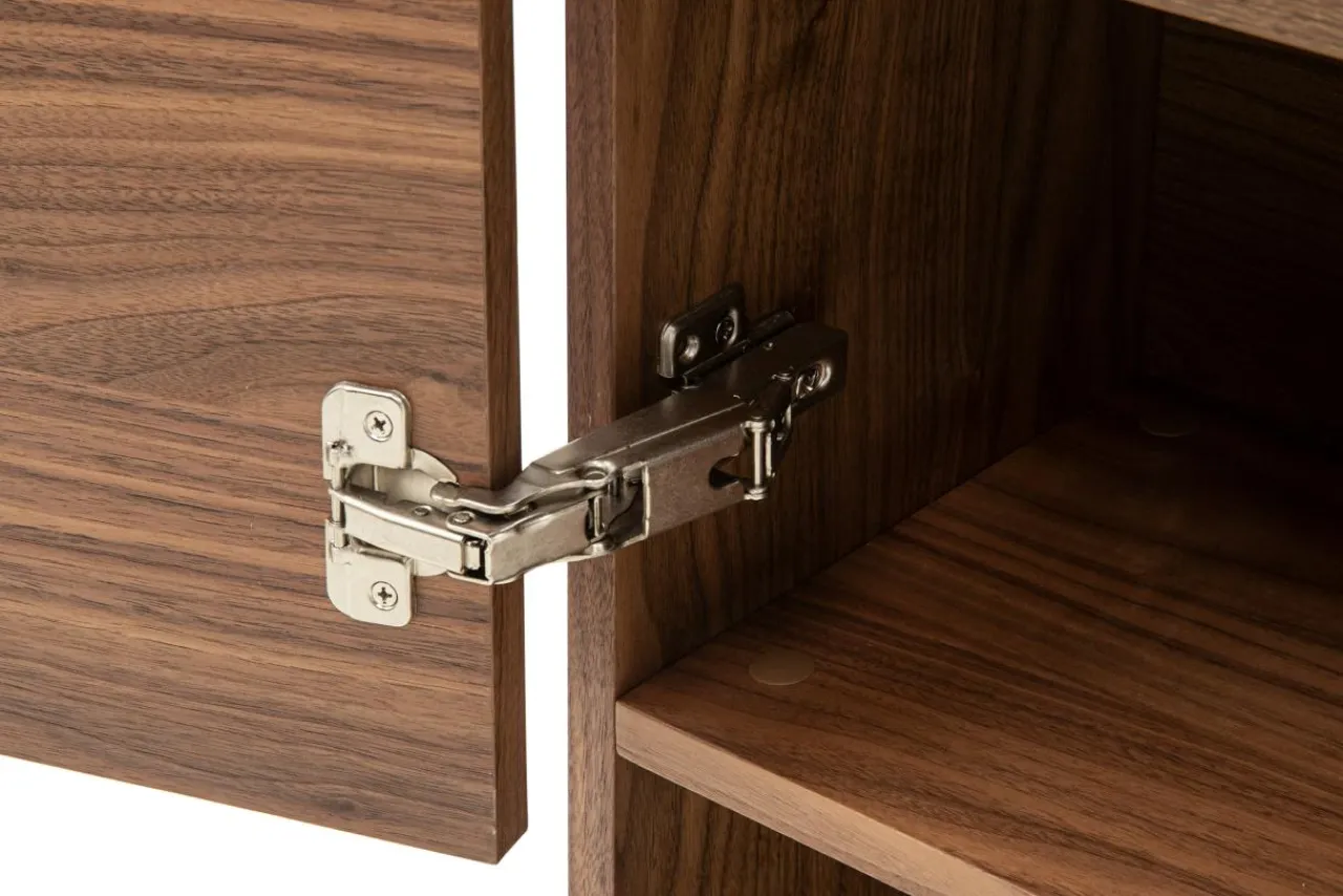 - Mebel wykonany z płyty MDF pokryto fornirem orzechowym i zabezpieczono lakierem.