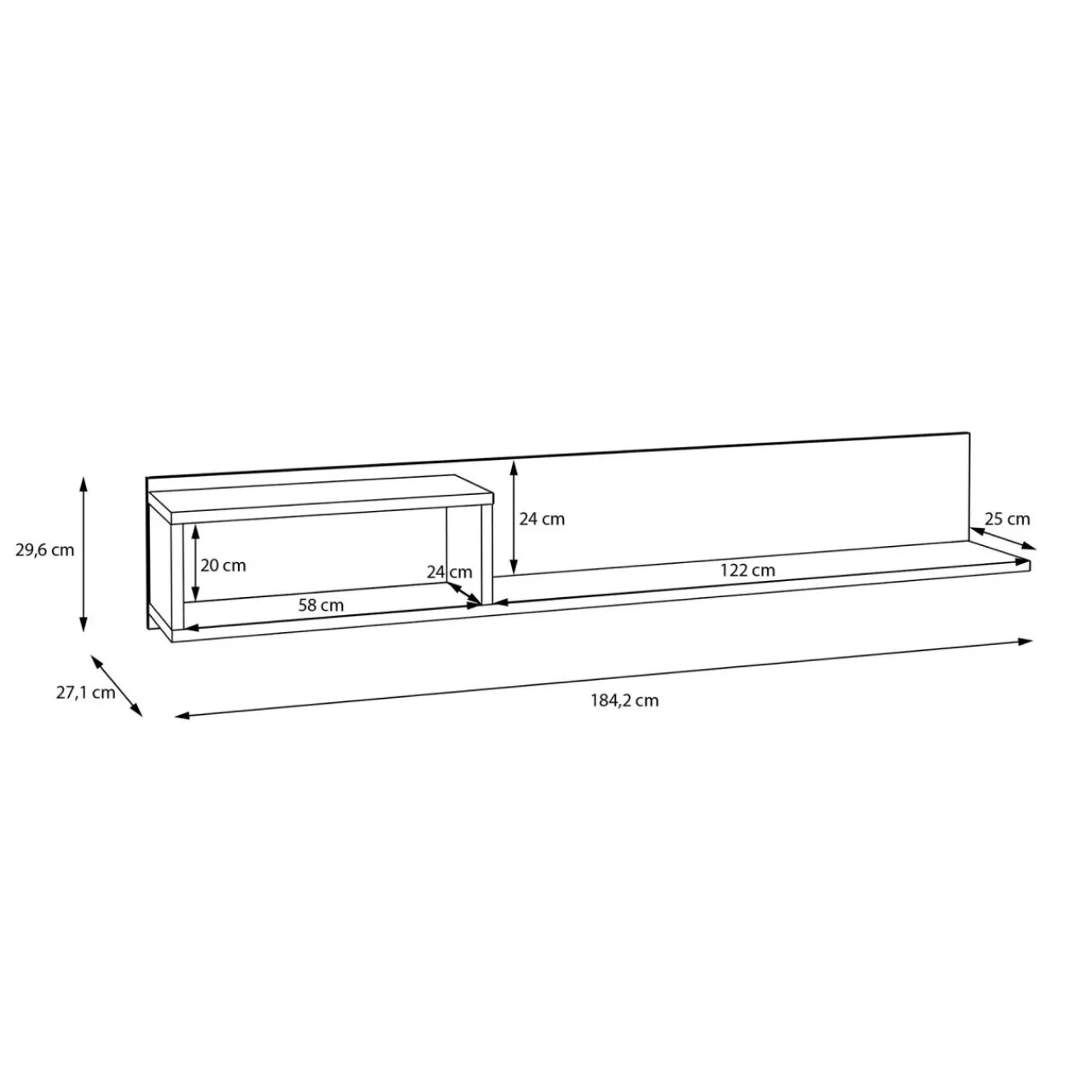 Stwórz spójną zabudowę ściany z półką wiszącą GALACTIQUE. Szeroka budowa idealnie sprawdzi się nad telewizorem i szafką RTV.
