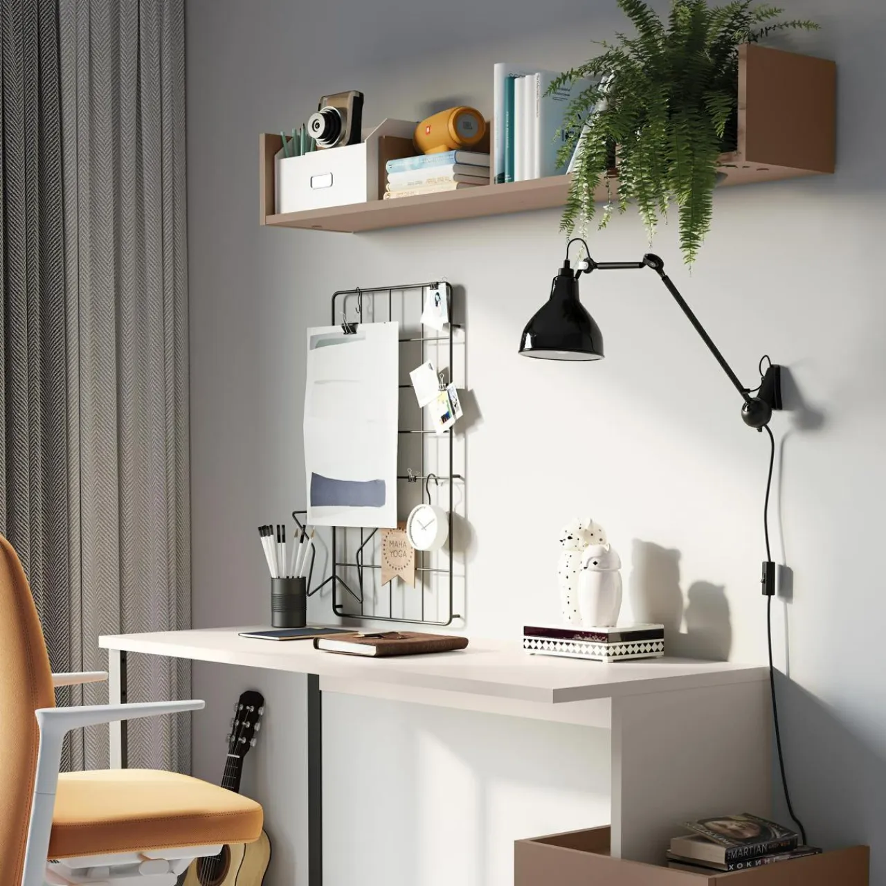 - Tył półek ochroni ścianę przed pobrudzeniami.