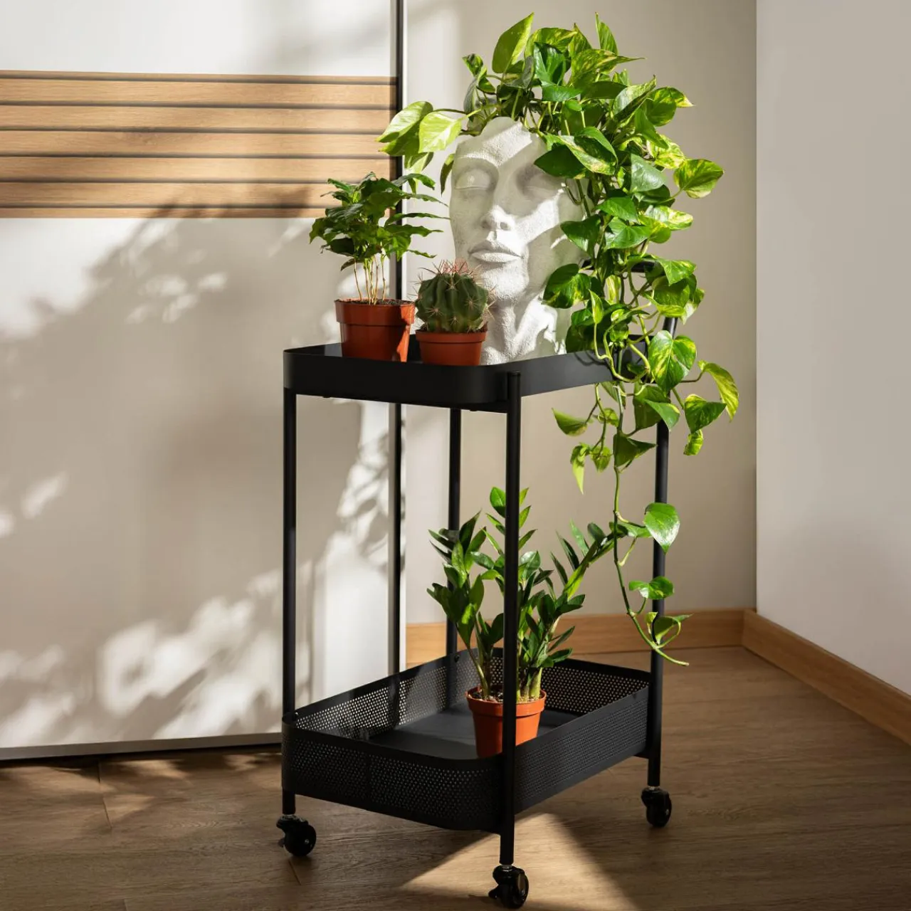Barek na kółkach HERSTO stanie się Twoim ulubionym pomocnikiem w kuchni. Na co dzień będzie Ci towarzyszyć jako dodatkowa przestrzeń na pojemniki i naczynia, a gdy przyjdzie czas na przyjęcie gości — chwyć za rączkę i wjedź do salonu!