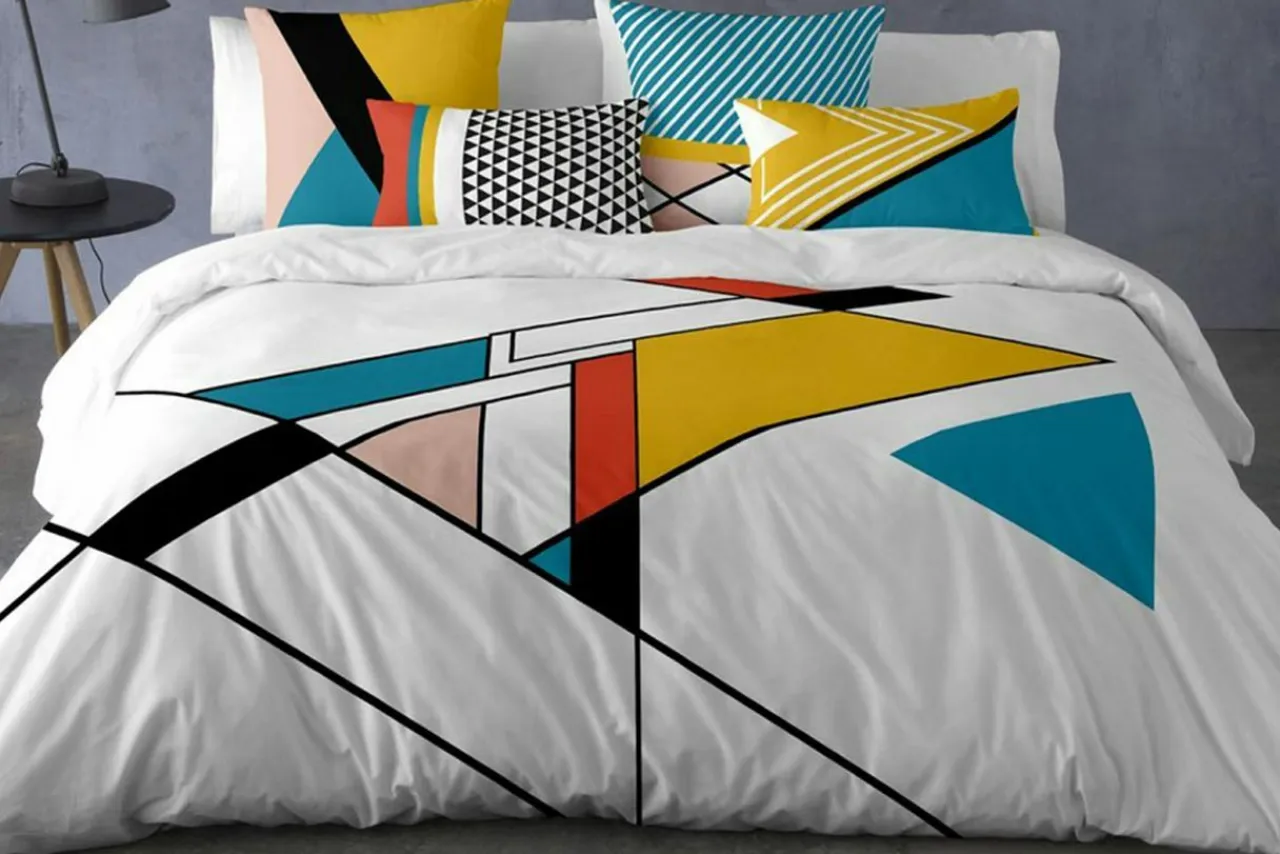 - Komplet pościeli CENIT może stać uwieńczeniem aranżacji w stylu art deco – trójkąty i trapezy stworzą spójny wystrój razem z ażurowymi lampami, geometrycznymi kloszami i foremnymi meblami.