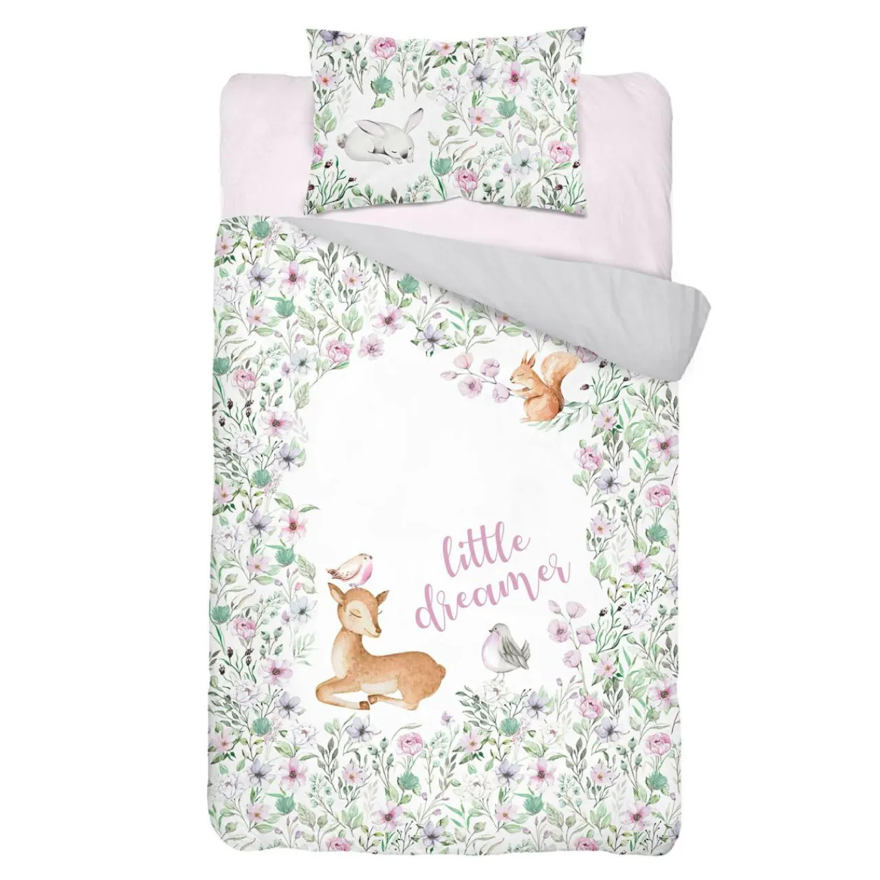 - Pościel posiada 2 nadruki, więc jeżeli chcesz wprowadzić do pokoju niemowlęcego trochę odmiany, wystarczy że po obrócisz ją na „drugą stronę”, by cieszyć oko nowym wzorem.