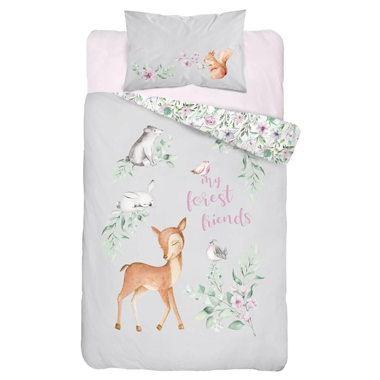 - W skład kompletu wchodzi: 1 poszwa 100×135 cm oraz 1 poszewki na poduszkę 40×60 cm;